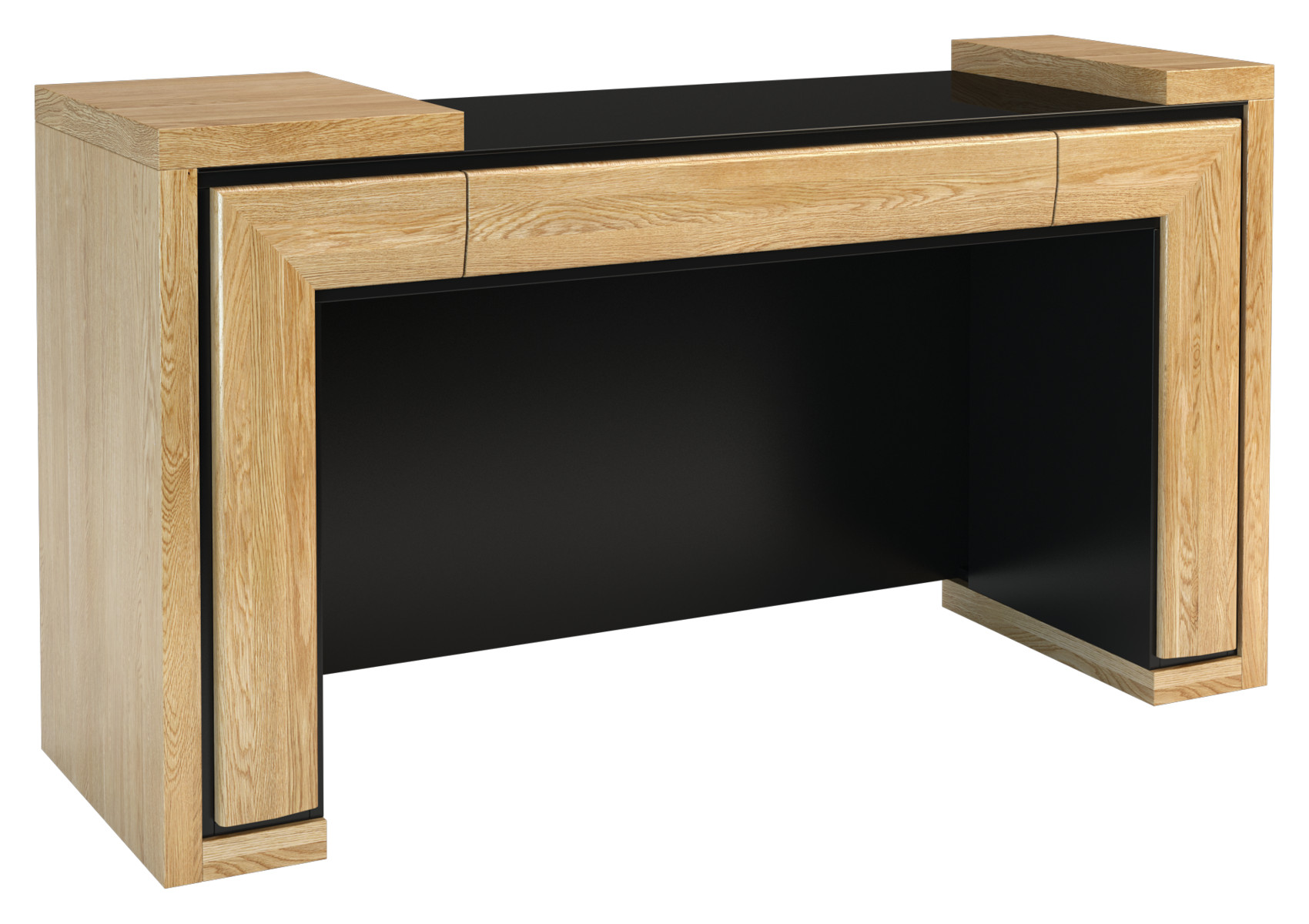 Toaletní stolek Corino vás zaujme moderním a luxusním designem. Systémový nábytek Corino je jedinečný svými přesnými geometrickými tvary. Stolek je vyroben z masivního dubového dřeva s horní deskou ze skla Lacobel. Díky kvalitnímu lakování a moření má nábytek přírodní vzhled masivního dřeva a jsou viditelné struktury lét. Máte na výběr ze 2 barevných variant.