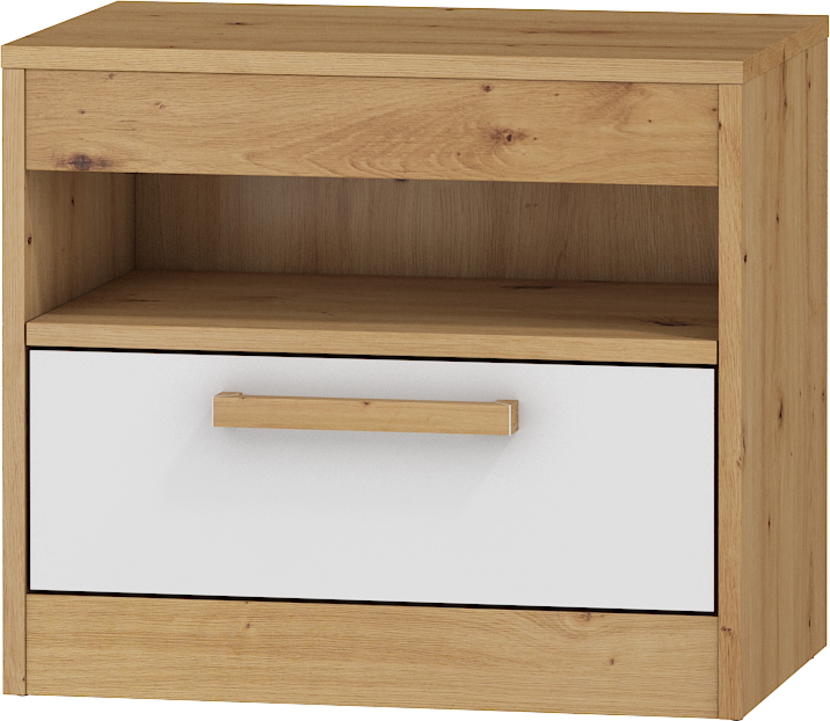 Noční stolek Maximus 32 se skvěle hodí do moderně zařízených interiérů. LTD materiál, o šířce 16 mm a 25 mm, ze kterého se stolek skládá, zajišťuje vysokou a špičkovou kvalitu. Desky mají ABS hranění, které zvyšuje odolnost proti odštípnutí hran. Dvířka i zásuvky jsou vybaveny systémem tichého dovírání. Stolek si můžete vybrat z několika barevných variant. Zajímavý design barev dodává stolku ještě více na luxusu a nadčasovosti.