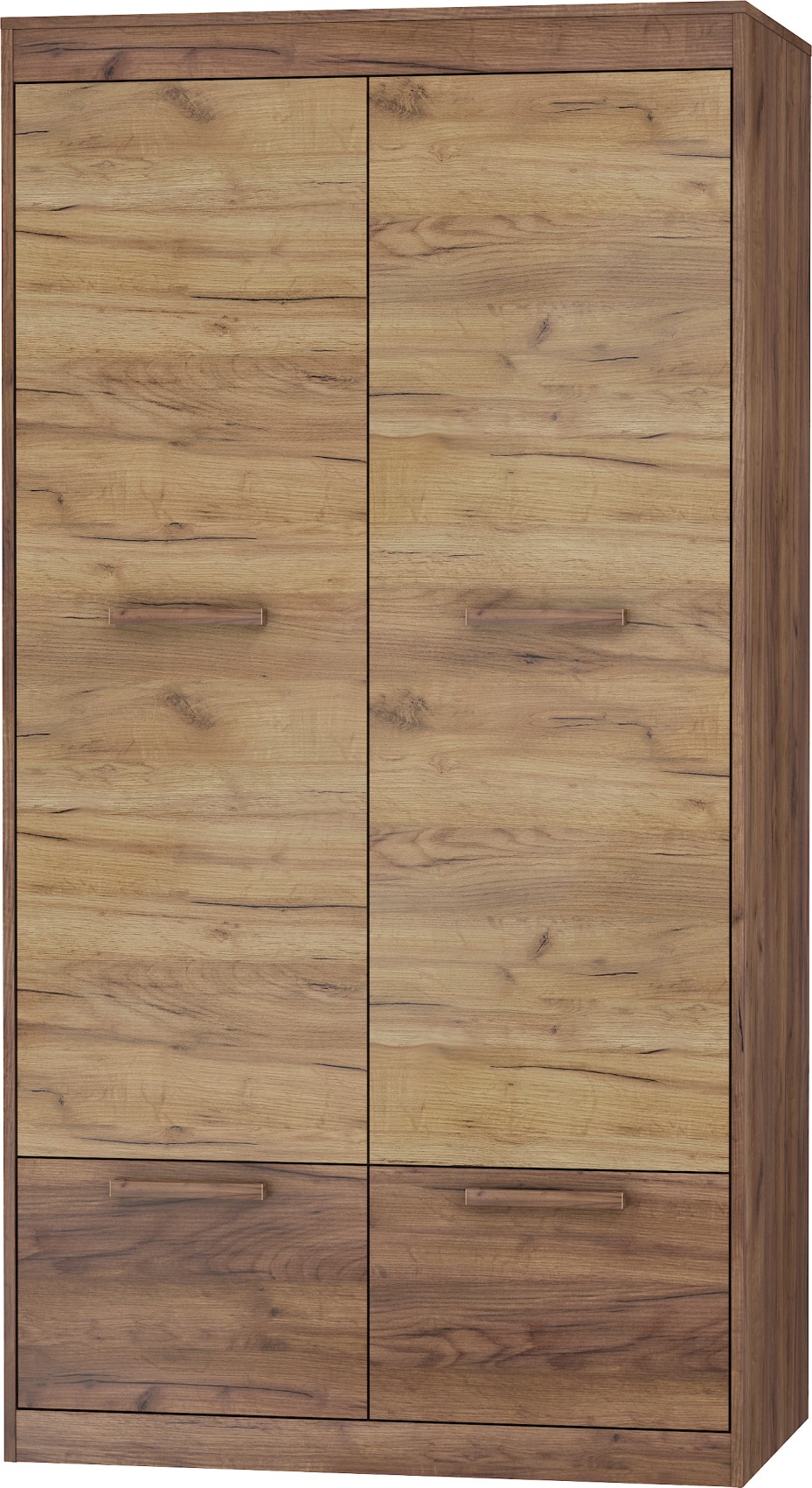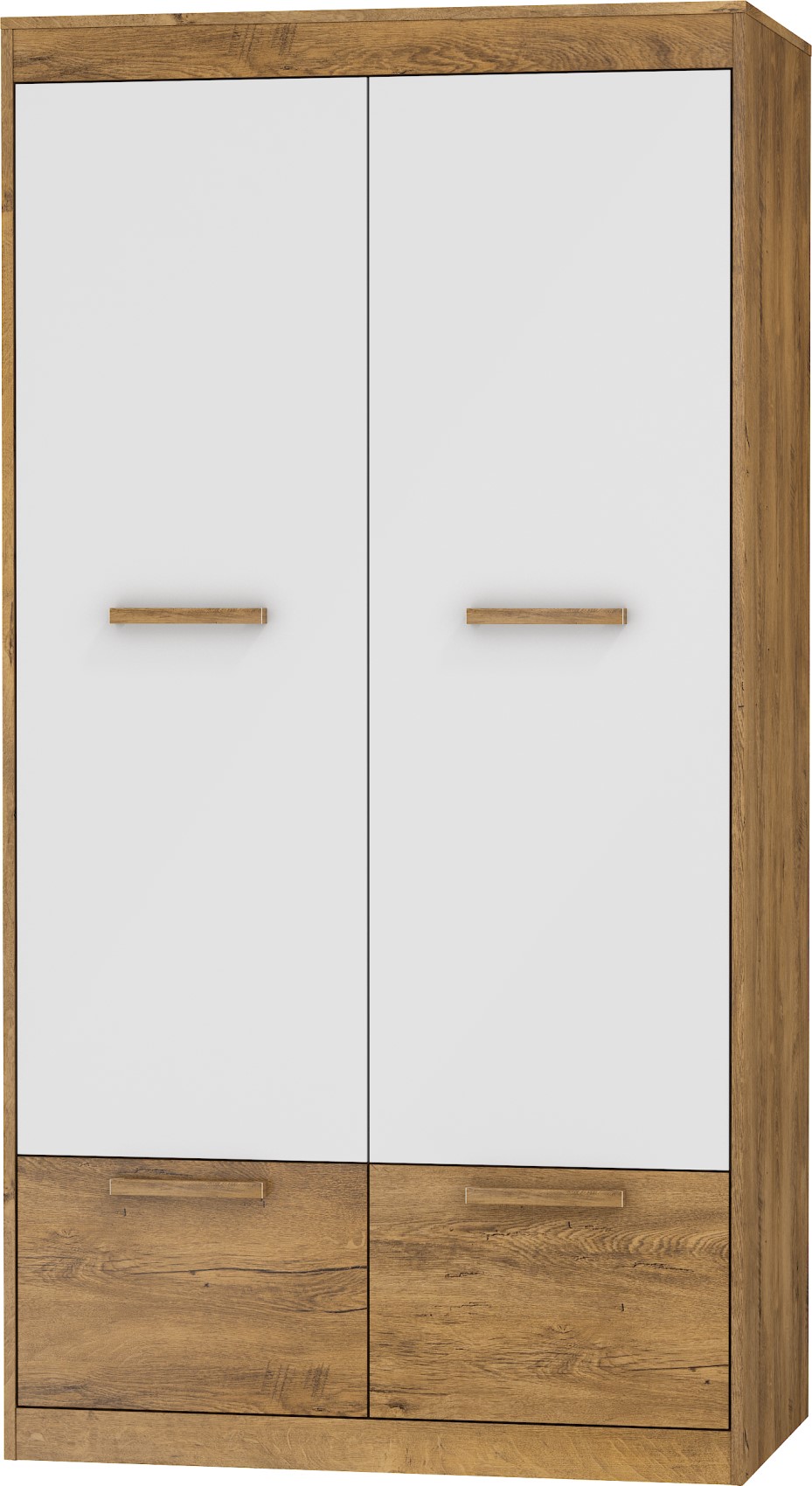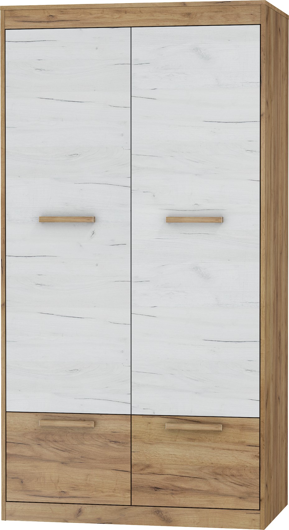 Součástí skříně jsou 4 plná dvířka, za kterými je vložena 1 dlouhá šatní tyč a 1 dlouhá lakovaná police.
