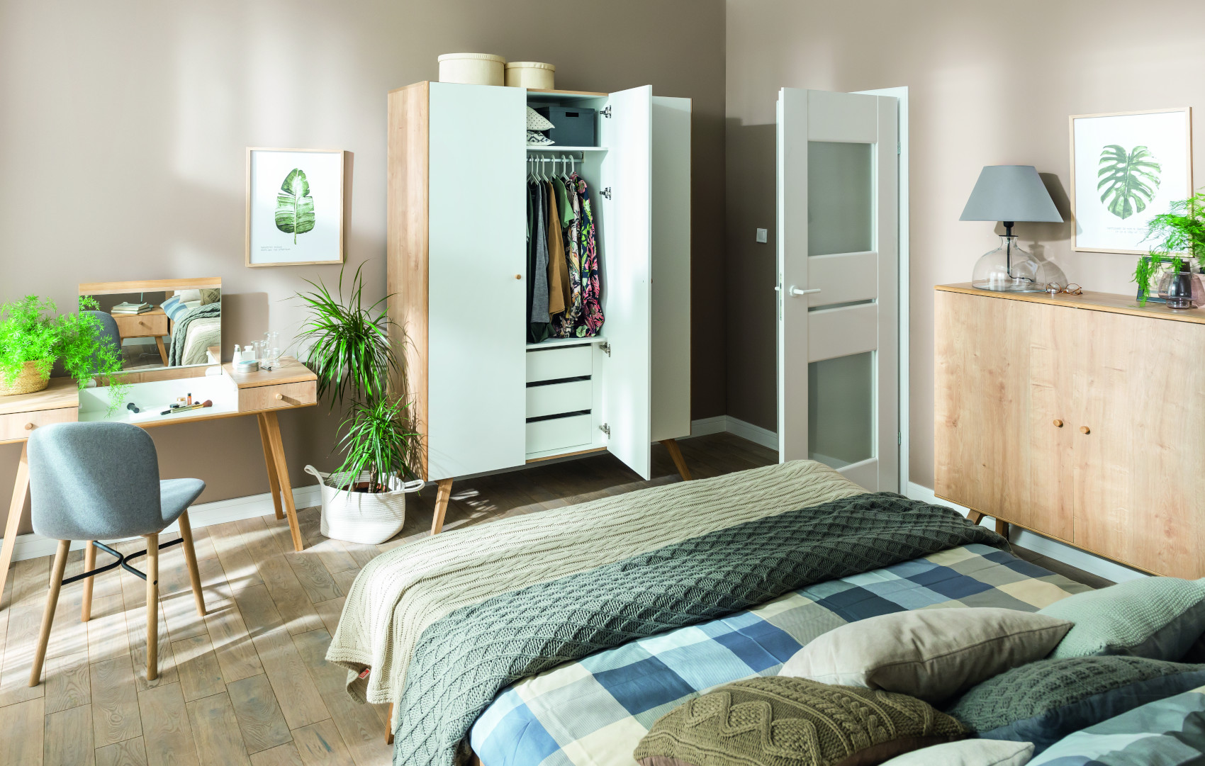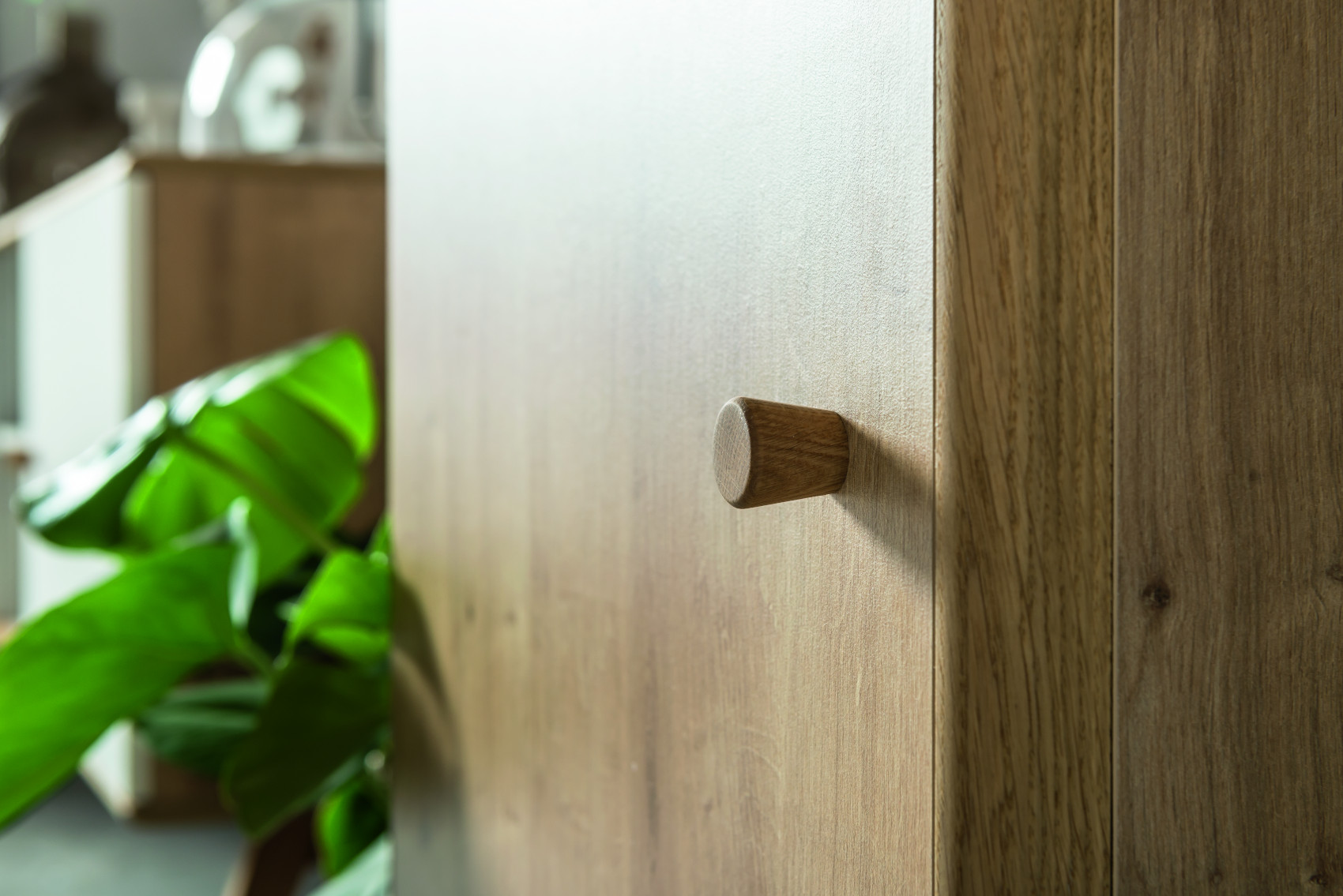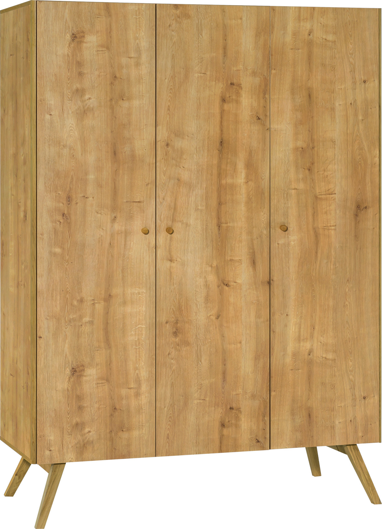 Skříň Nature 3D vás zaujme svým jednoduchým přírodním designem a retro stylem. Je vyrobena z kvalitního lamina o síle 16 mm a nohy, úchyty a hrany skříně jsou z masivního dubového dřeva, které vám zajistí kvalitu a odolnost. Vysoké nožky dodají nábytku eleganci a provzdušní váš interiér. Dvířka mají systém tichého dovírání. Nabízíme vám 2 dostupné barevné varianty - dub/dub a dub/bílá.