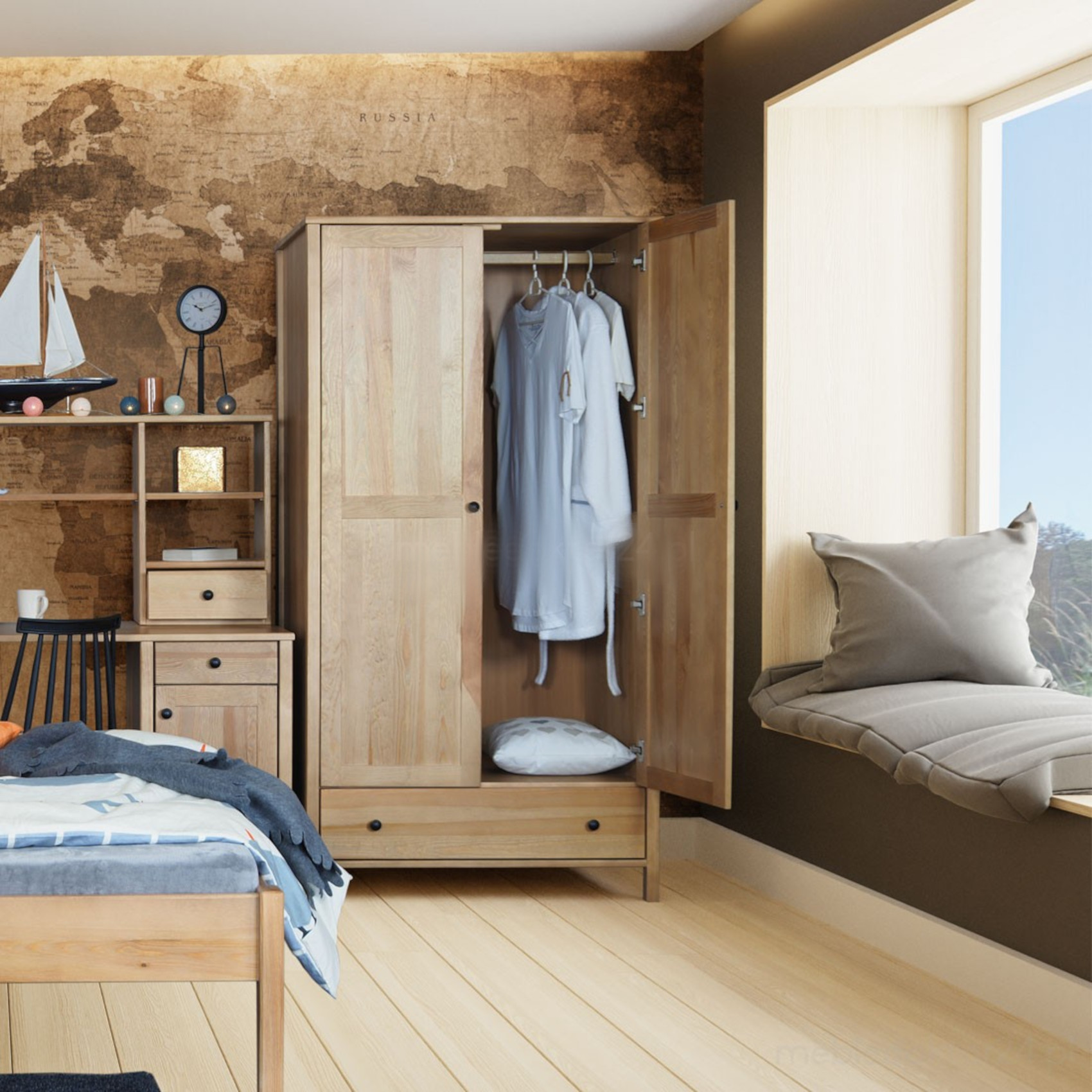 Šatní skříň Prestige II vás zaujme svým elegantním přírodním designem s viditelnou strukturou dřevěných lét. Je vyrobena z masivního borovicového dřeva, které vám zaručí kvalitu, odolnost a stabilitu. Součástí jsou kulaté kovové úchyty a úzké vysoké nožky, které dodají nábytku nádech provensálského stylu a provzdušní váš interiér. Na výběr máte z několika variant odstínů moření.