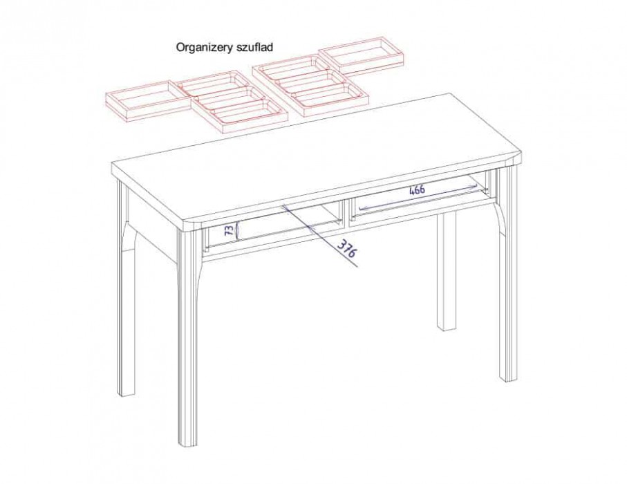 Stolek má 2 zásuvky s tichým dovíráním a jednoduchým dotykovým systémem otevírání Push to open. Zásuvky jsou vyplněny jednotlivými organizéry, díky kterým budete mít vždy přehled ve své kosmetice.