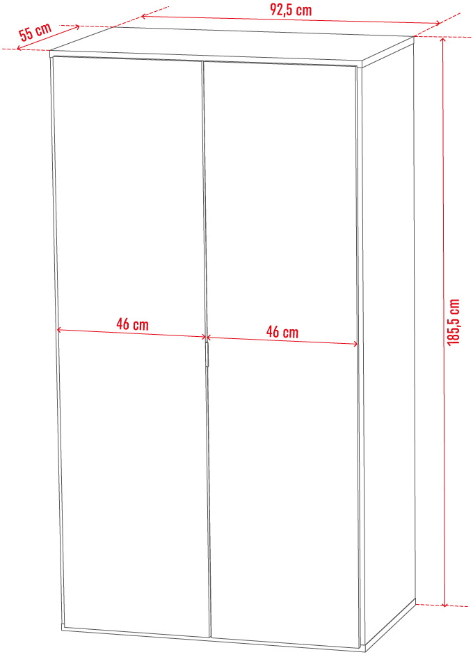 Moderní šatní skříň Simple 2D vás zaujme svým jednoduchým a zároveň luxusním designem. Tělo i přední část jsou vyrobeny z kvalitního a odolného lamina. Úchyty jsou z kovu a nohy z masivního dubového dřeva, bukového dřeva nebo kovu - je pouze na vás, jaký typ nožky si zvolíte. Dvířka mají zabudovaný systém tichého dovírání. Nábytek Simple je jedinečný tím, že si sami zvolíte jeho barevné provedení.