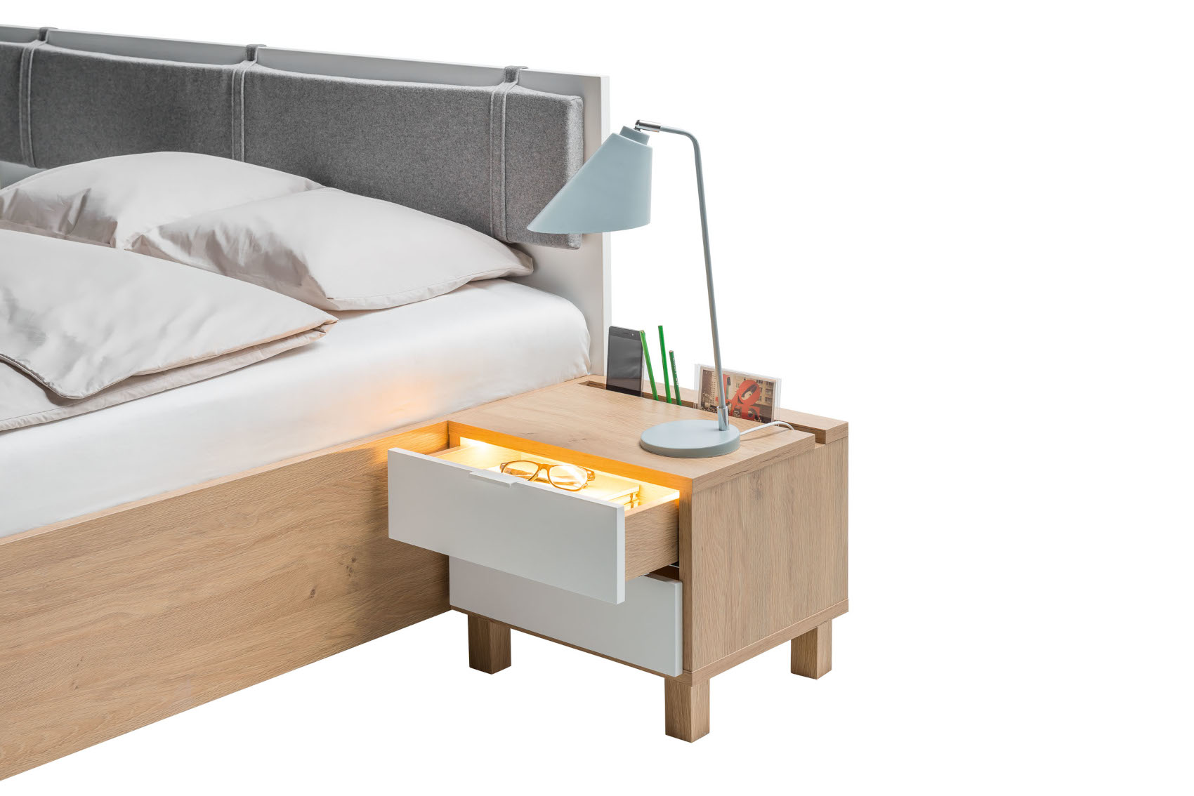 Záhlavek Simple vás zaujme svým jednoduchým designem. Je vyplněn pěnou a očalouněn šedou potahovou látkou z vlny. Záhlavek si můžete dokoupit k posteli Simple.