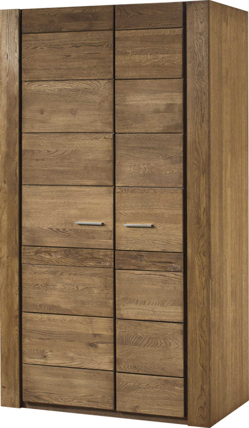 Moderní dvoudveřová šatní skříň Velvet 70 vás zaujme svým elegantním a přírodním designem s viditelnou strukturou dřevěných lét. Přední část skříně je vyrobena z masivního dubového dřeva a korpus z přírodní dubové dýhy. Dvířka mají kovové úchyty.