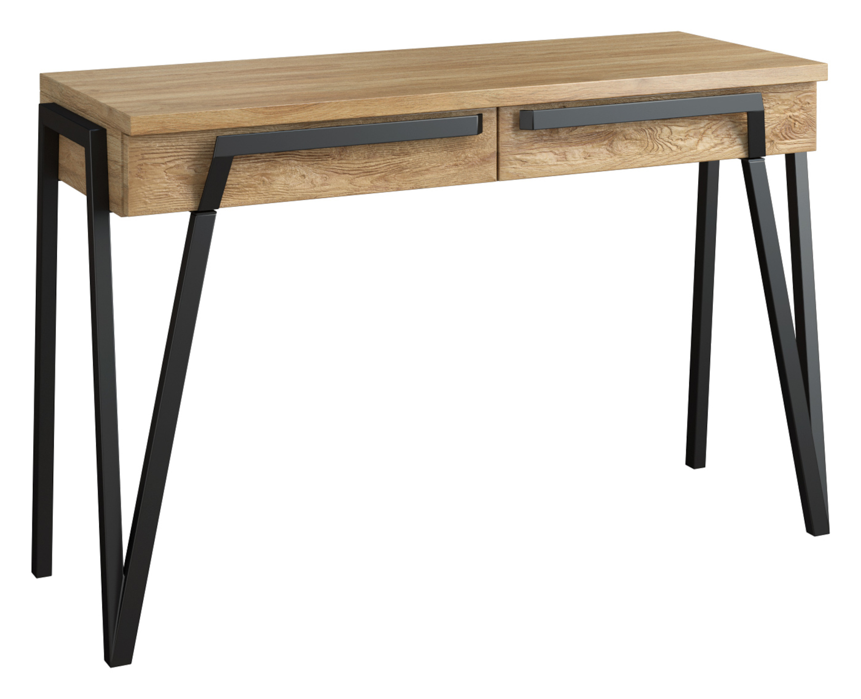 Toaletní stolek Pik vás zaujme svým moderním a jednoduchým designem. Přední část nábytku je vyrobena z masivního dubového dřeva a korpus je z přírodní dubové dýhy. Kvalitní technologie lakování a moření dodává nábytku přirozený vzhled dřeva a zvýrazňuje strukturu lét. Jeho atypickými prvky jsou kovové práškově lakované nožky, které provzdušní celý prostor. Zásuvky mají tiché dovírání.