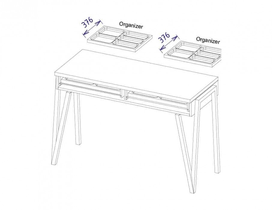 Stolek má pod horní deskou 2 zásuvky na kovových pojezdech s vnitřními organizéry.