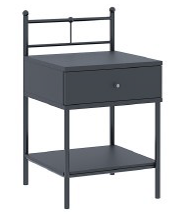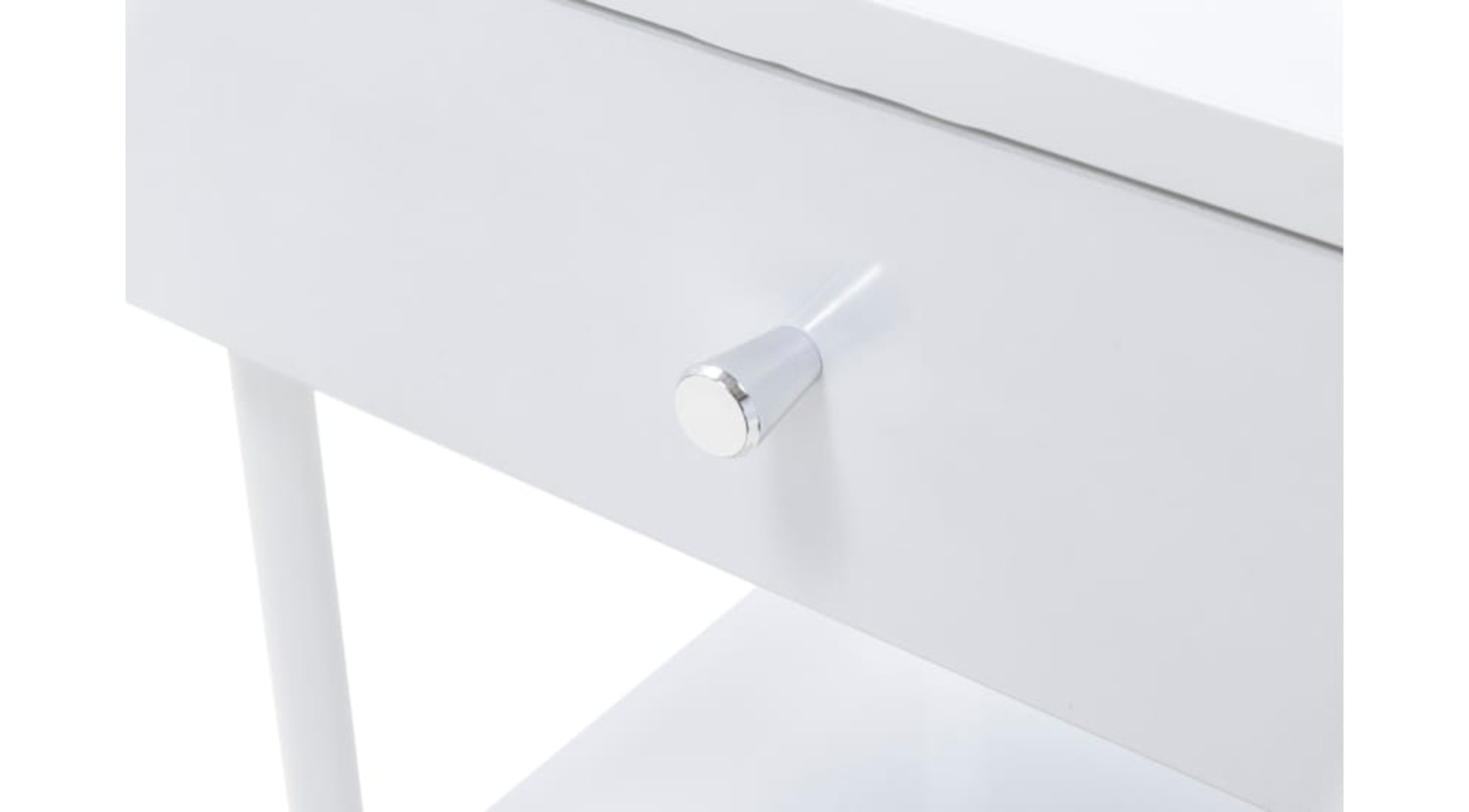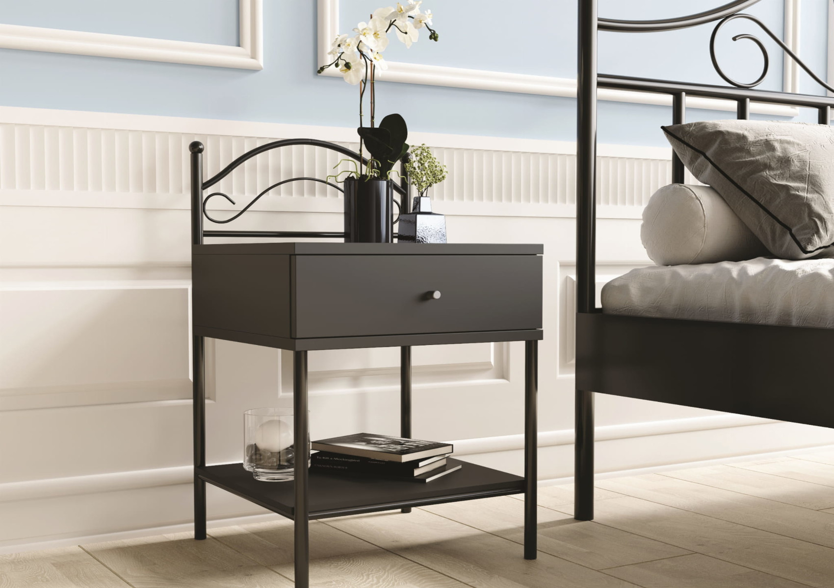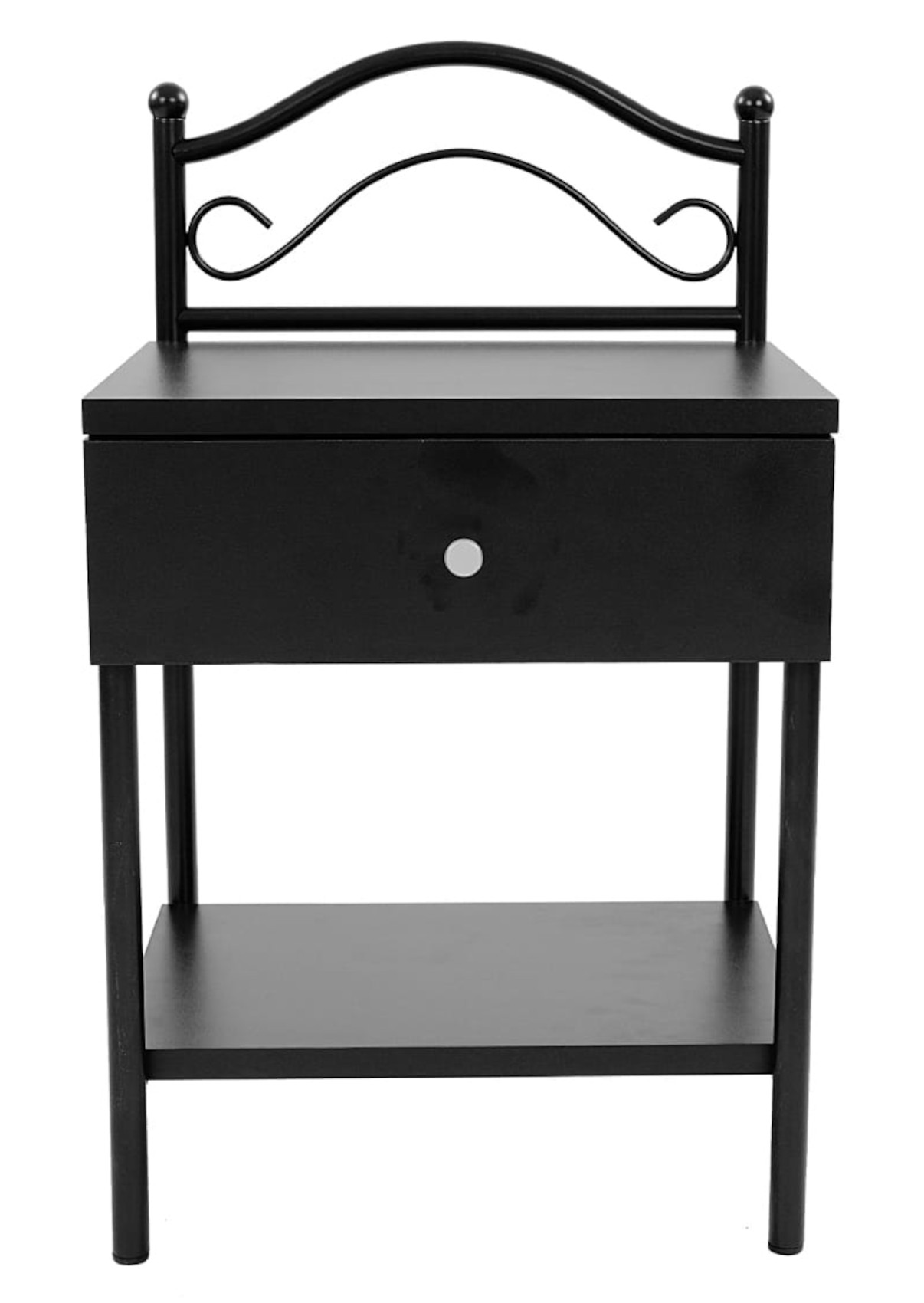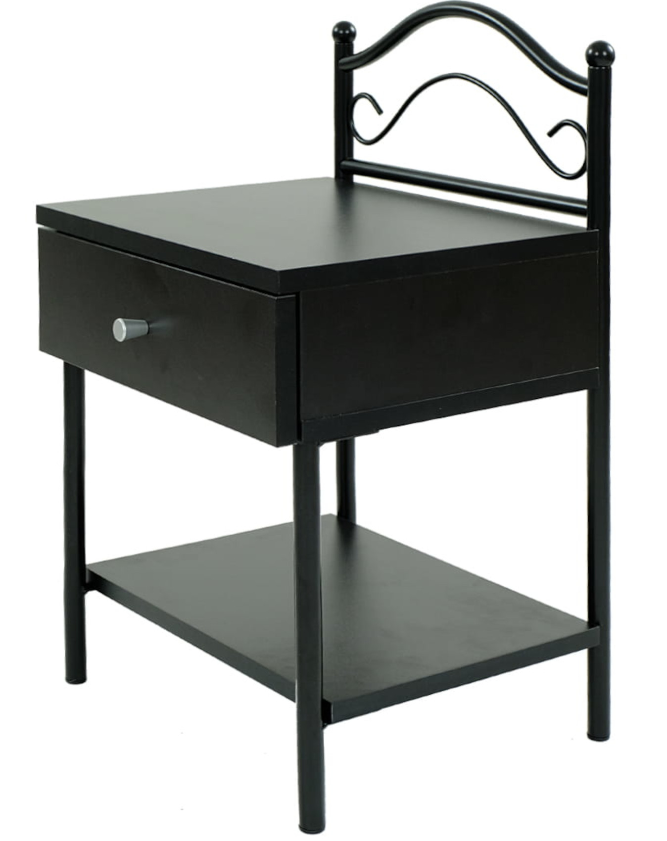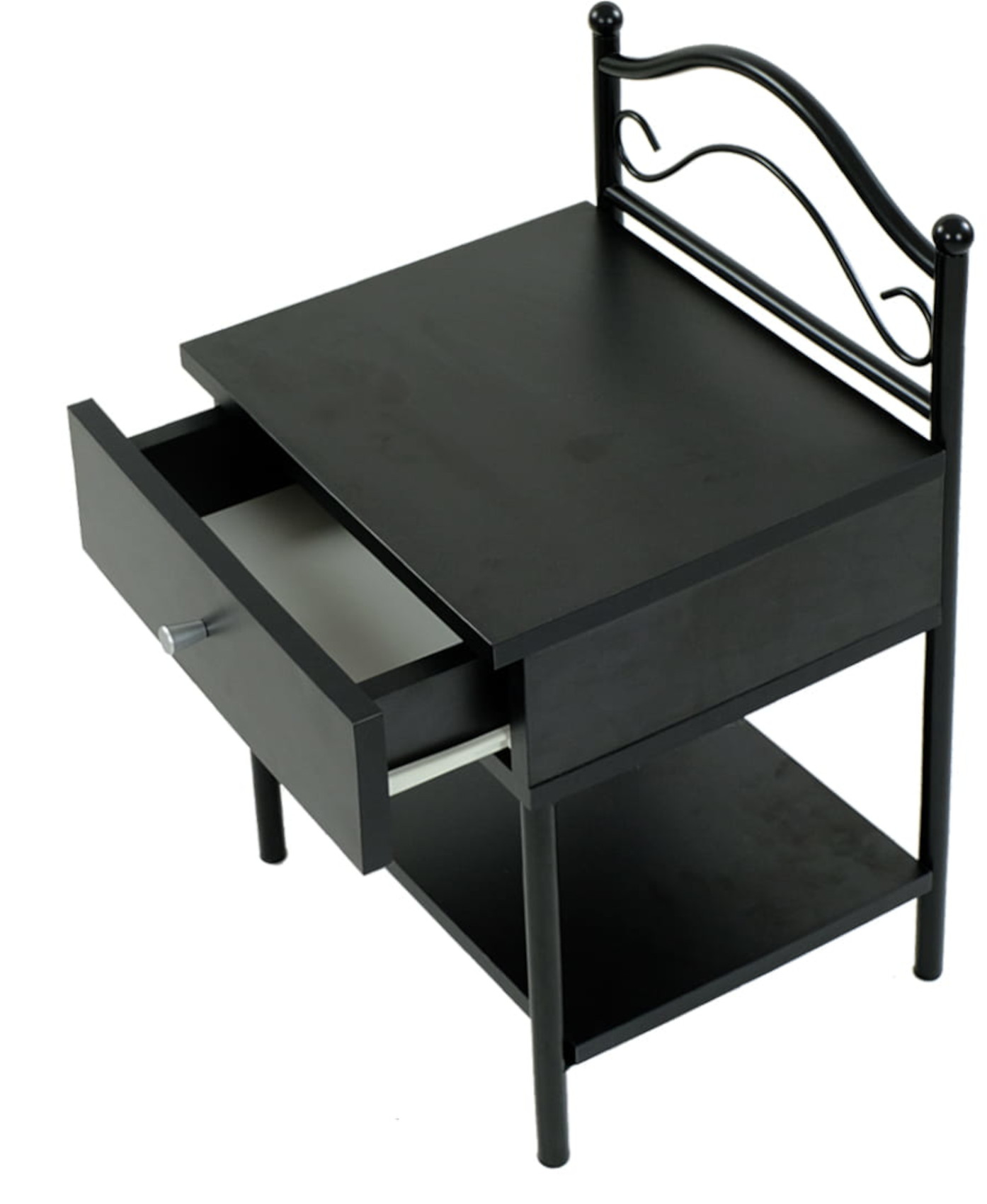 Noční stolek se zásuvkou vás zaujme svým luxusním designem. Je vyroben z práškově lakovaného kovu a kvalitního lamina. Tato kombinace materiálu vám zaručí odolnost a stabilitu stolku. Jedinečným prvkem jsou dekorační prvky, které dodají nábytku nádech elegance a francouzského stylu. Nabízíme vám 6 barevných variant konstrukce a 2 odstíny zásuvky.