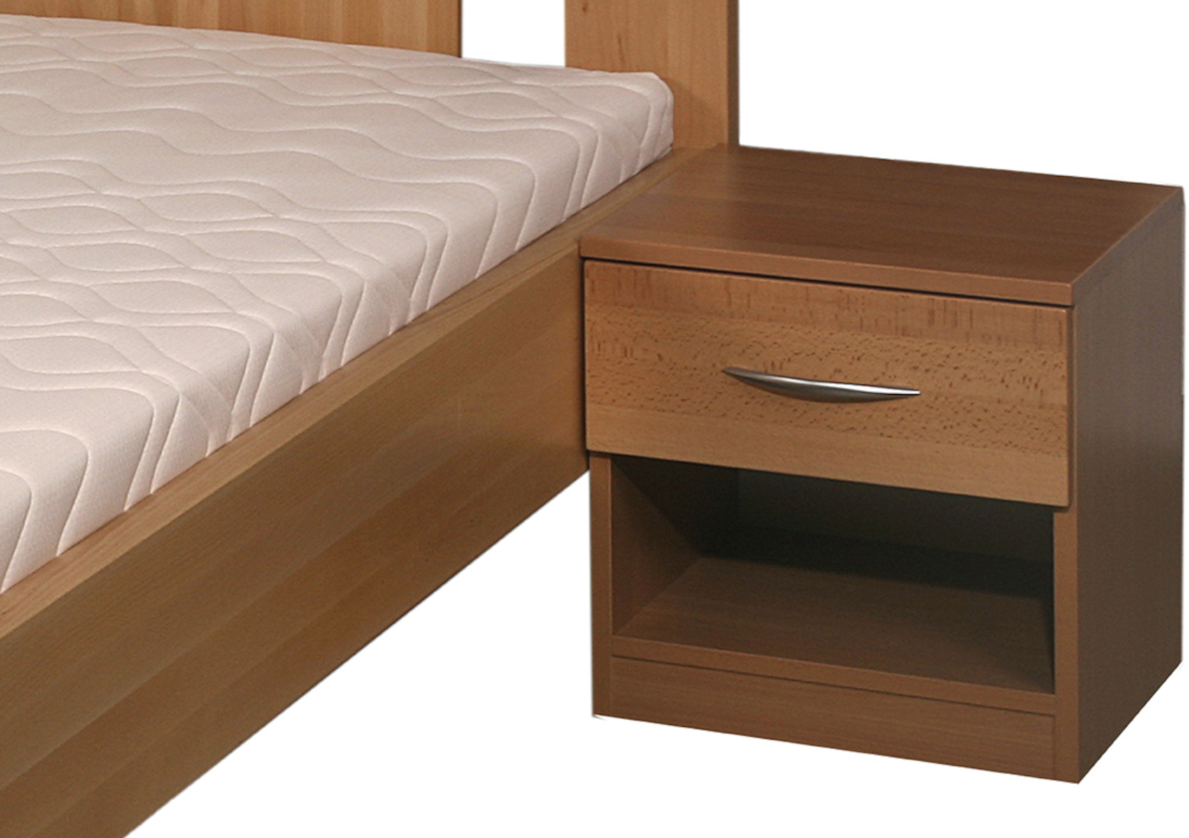 Noční stolek k postelím Ellen a Emilly vás zaujme svým jednoduchým designem. Je vyroben z masivního bukového dřeva o tloušťce 4 cm, které vám zaručí kvalitu, odolnost a stabilitu. Součástí stolku je horní zásuvka na kovových pojezdech Hettich, pod kterou je otevřená nika k uložení knih, časopisů nebo elektroniky.