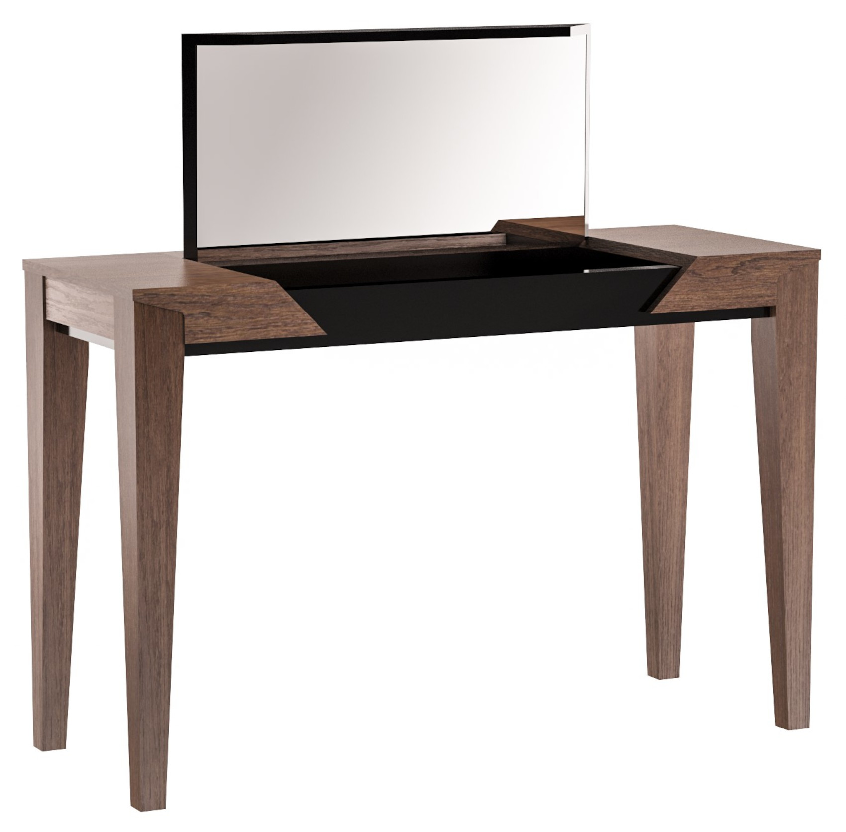 Stolek je vybaven sklopným zrcadlem, pod kterým se nachází úložný prostor například k uložení kosmetiky nebo šperků.