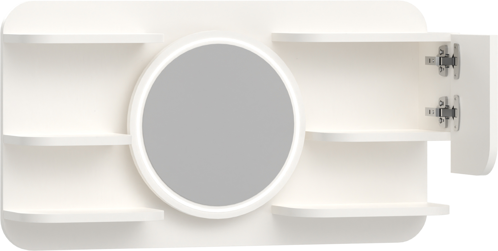 Součástí je zrcadlo se zabudovaným LED osvětlením. Po stranách je několik poliček k odložení vaší oblíbené kosmetiky či jiných nezbytností.