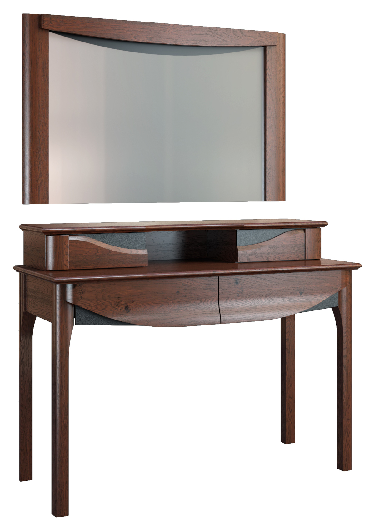 Toaletní stolek Bari s nadstavbou vás zaujme svým elegantním designem. Je vyroben z masivního dubového dřeva a přírodní dubové dýhy. Kvalitní lakování a moření dodává nábytku přírodní vzhled dřeva a zvýrazňuje strukturu lét. Jedinečným prvkem celé kolekce jsou vyřezávané dekorační prvky na dvířkách v 5 odstínech - burgundský dub, beton, rez, černá (magma) a ocel.