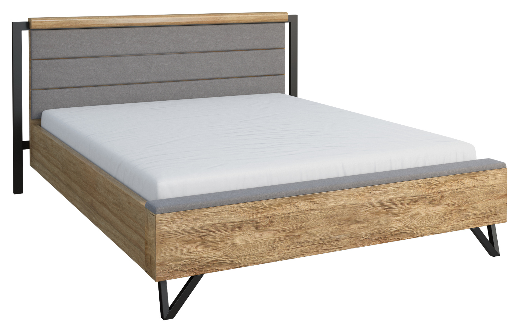 Postel Pik vás zaujme svým moderním a jednoduchým designem. Je vyrobena z masivního dubového dřeva a přírodní dubové dýhy. Hlavové i nožní čelo má očalouněné potahovou látkou. Kvalitní technologie lakování a moření dodává nábytku přirozený vzhled dřeva a zvýrazňuje strukturu lét. Jeho atypickými prvky jsou kovové práškově lakované nožky, které provzdušní celý prostor. Máte na výběr z 5 rozměrů - 90 cm, 120 cm, 140 cm, 160 cm, 180 cm.