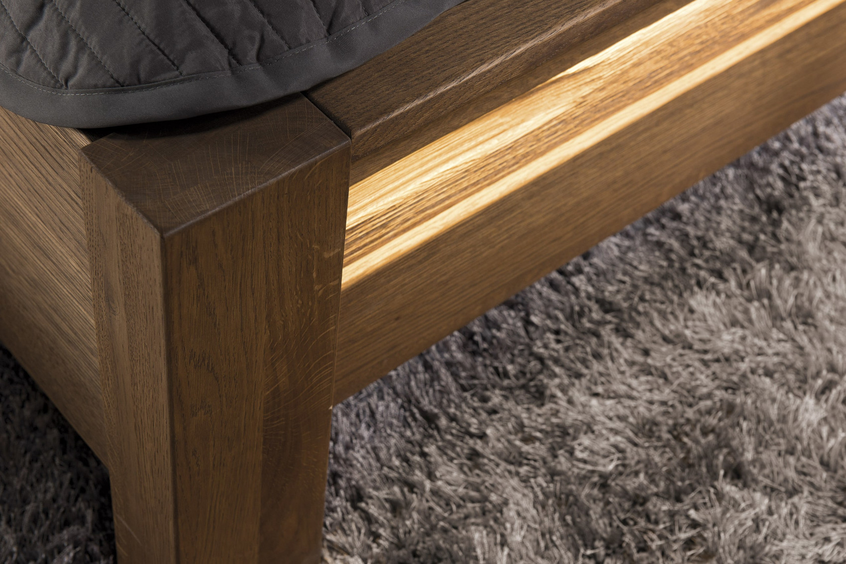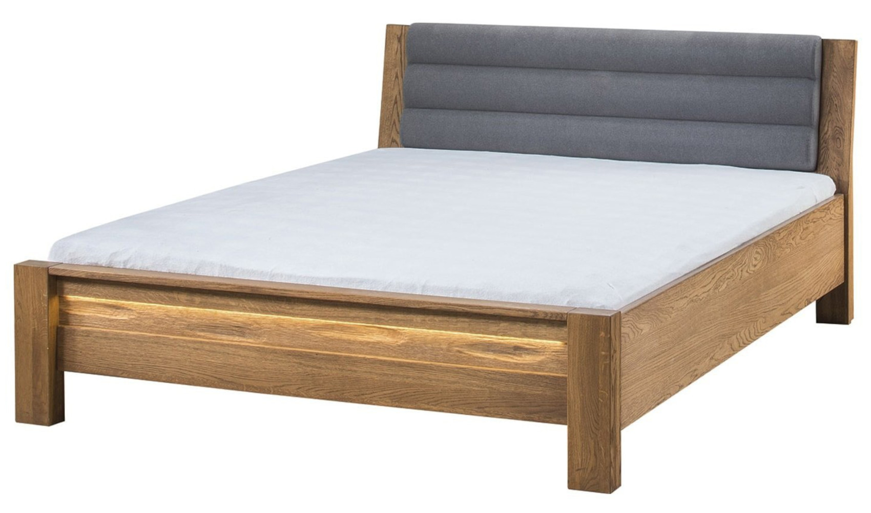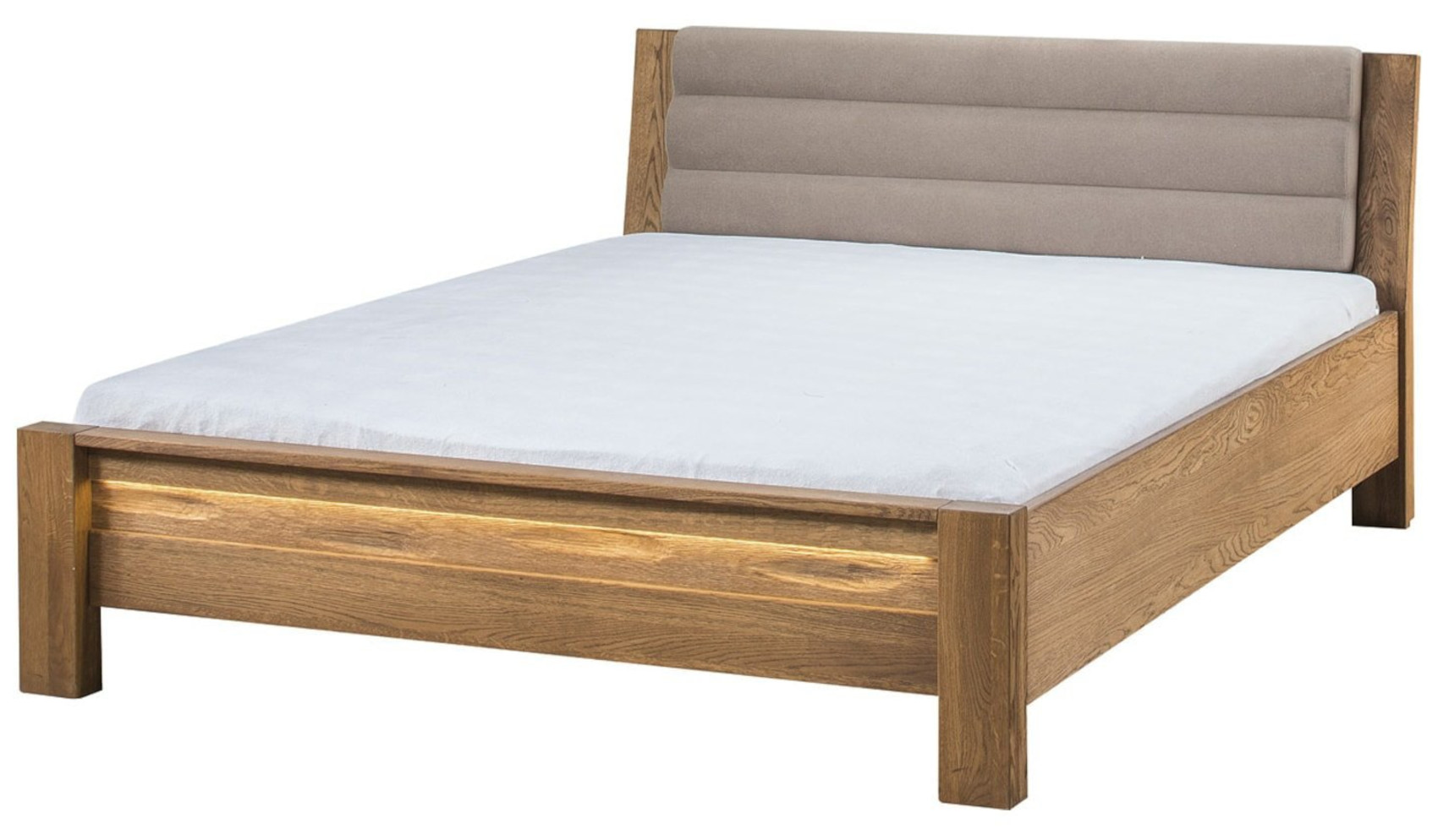 Moderní postel Velvet 76 vás zaujme svým elegantním a přírodním designem s viditelnou strukturou dřevěných lét. Postel je vyrobena z masivního dubového dřeva, přírodní dubové dýhy a čelo je očalouněno potahovou látkou. Jedinečným prvkem je LED osvětlení pod nožním čelem, které dodá nábytku nádech luxusu. Nabízíme 3 barevné varianty čalounění.