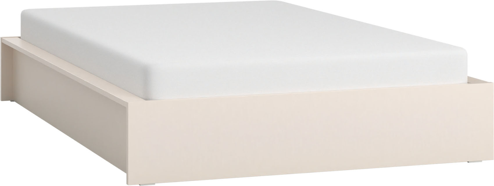 Postel 4You 140 cm vás zaujme svým moderní designem v pískově béžovém odstínu. Je vyrobena z kvalitního lamina, které je odolné vůči poškrábání a nečistotám. Můžete si vybrat postel bez hlavového čela nebo variantu s vysokým čelem.