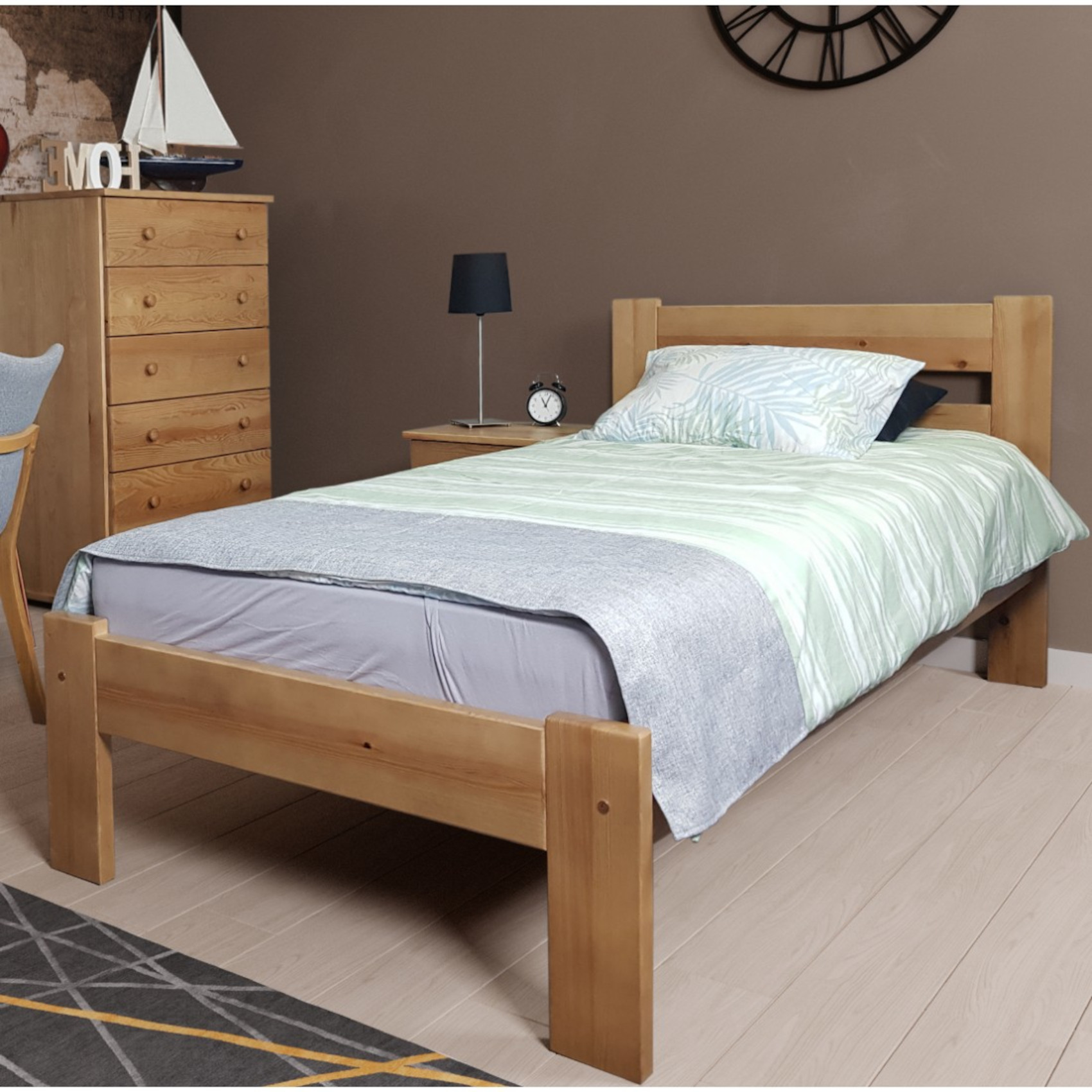 Klasická postel Aron vás zaujme svým jednoduchým přírodním designem s viditelnou strukturou dřevěných lét. Je vyrobena z masivního borovicového dřeva, které vám zaručí kvalitu, dlouhou životnost, odolnost a stabilitu. Dřevo je chráněno speciálním ekologickým lakováním. Máte na výběr z několika odstínů moření dřeva. Nabízíme vám až 7 variant rozměrů postele.
