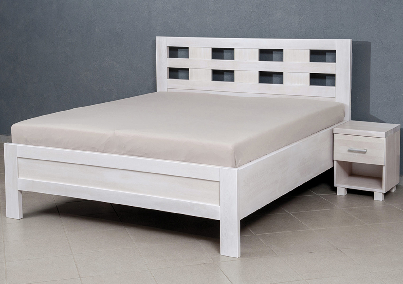 Součástí ceny není noční stolek, ale můžete si jej zakoupit pod názvem Noční stolek k Ellen a Emilly. V naší nabídce naleznete několik variant nočních stolků z přírodní dýhy nebo masivního dřeva.