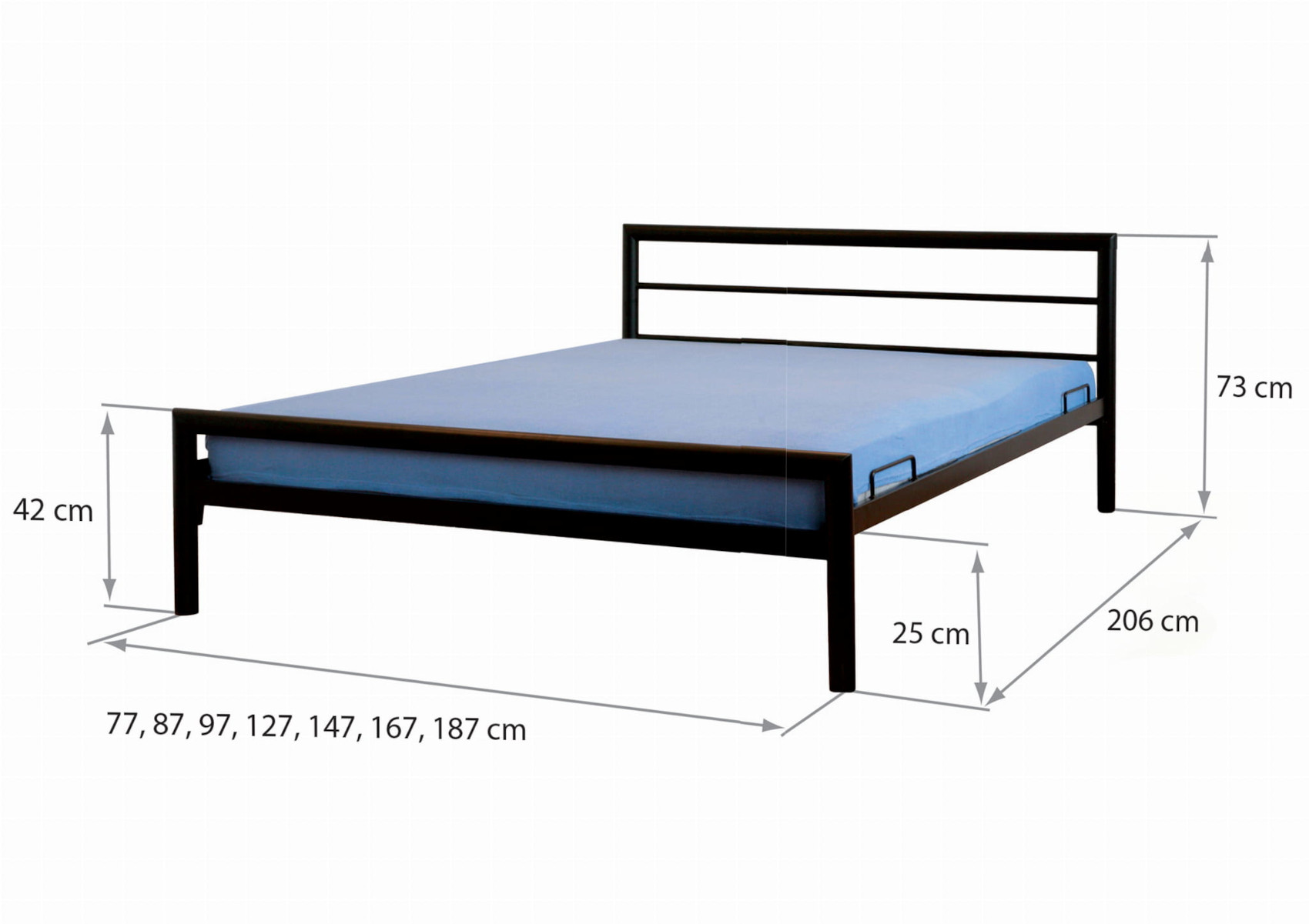 Postel Inga vás zaujme svým jednoduchým luxusním designem. Je vyrobena z kvalitního lakovaného kovu, který vám zaručí odolnost a stabilitu postele. Jedinečným prvkem je prosté hlavové a nožní čelo, které dodá nábytku nádech elegance. Máte možnost si vybrat z několika variant rozměrů a vybavit si tak studentský pokoj nebo ložnici. Nabízíme vám 6 barevných variant a sladit tak postel s ostatním nábytkem.