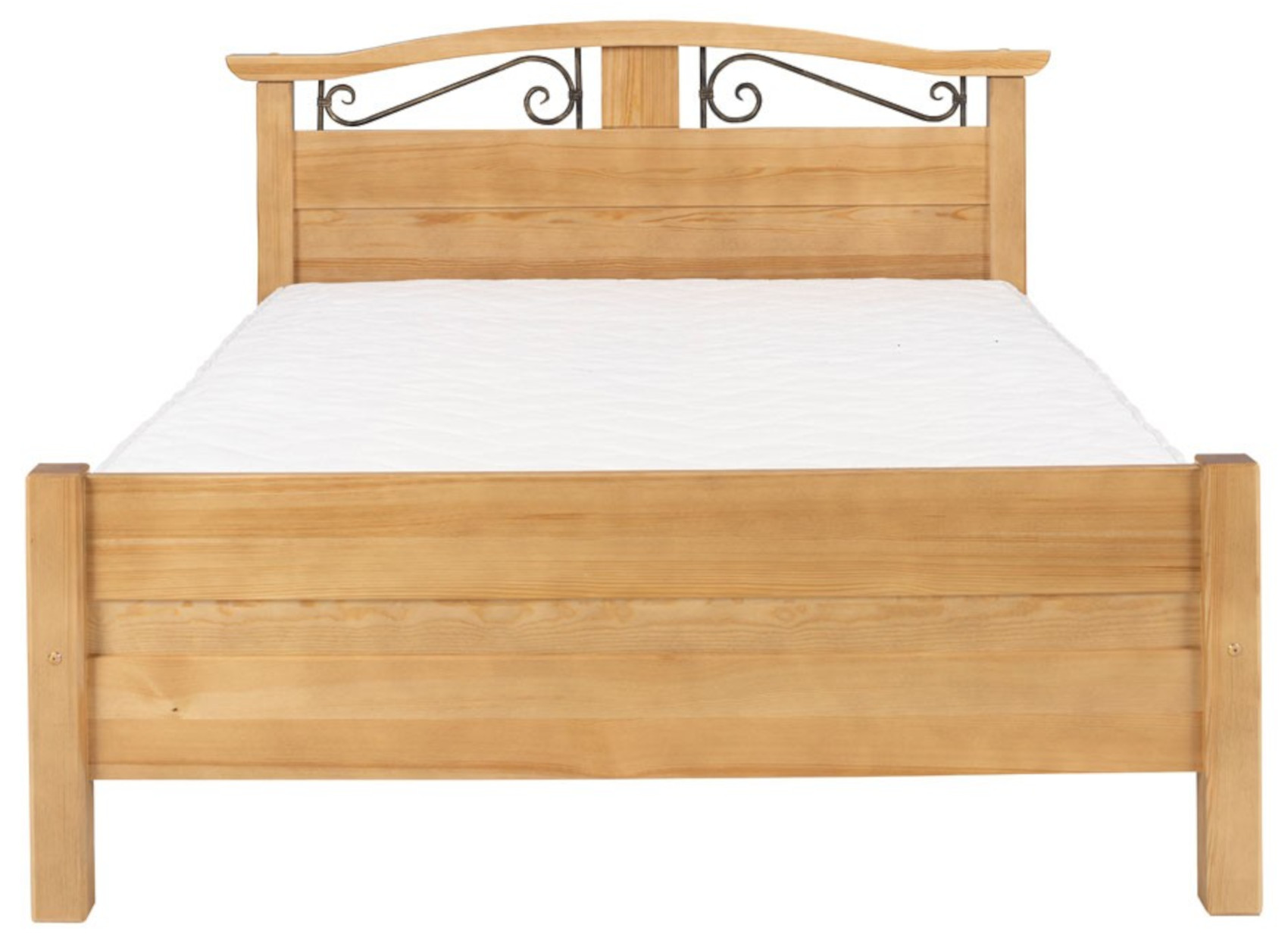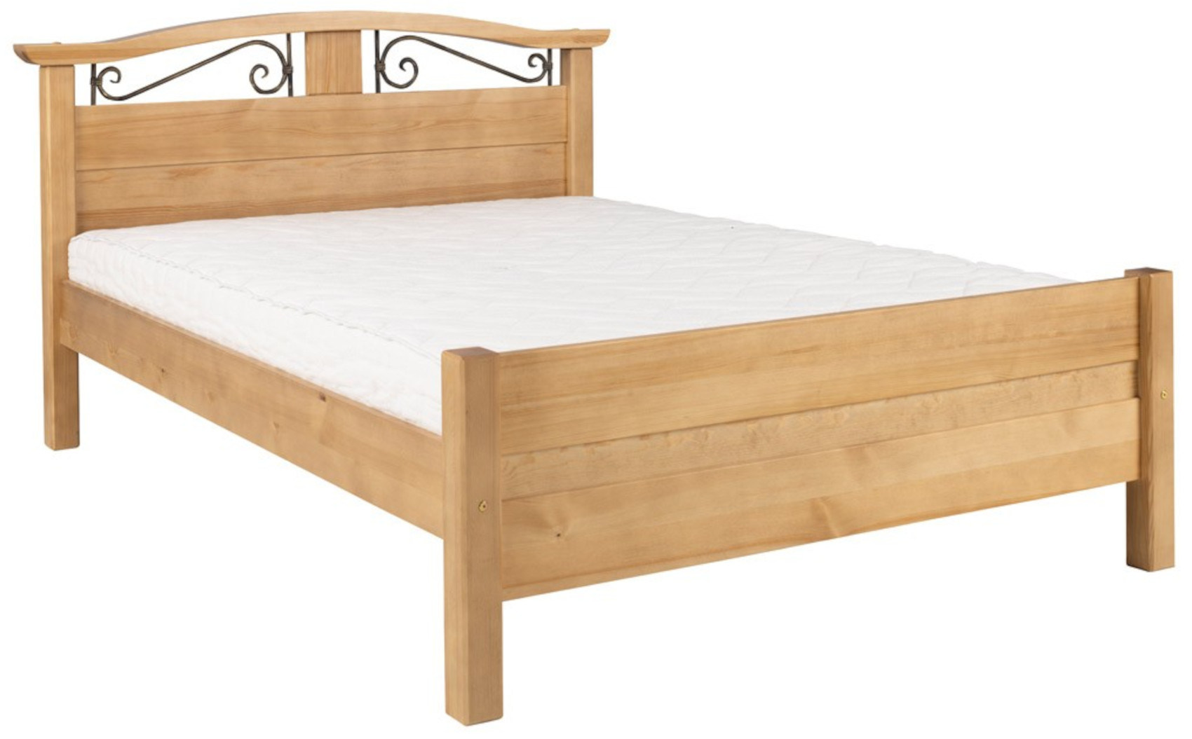 Postel Korfu II vás zaujme svým přírodním designem s viditelnou strukturou dřevěných lét. Jedinečným prvkem je vysoké hlavové čelo s kovovými dekoračními prvky, které dodají nábytku nádech elegance a francouzského stylu Provence. Je vyrobena z masivního borovicového dřeva, které vám zaručí kvalitu, dlouhou životnost, odolnost a stabilitu. Dřevo je chráněno speciálním ekologickým lakováním. Máte na výběr z několika odstínů moření dřeva. Nabízíme vám až 5 variant rozměrů postele.