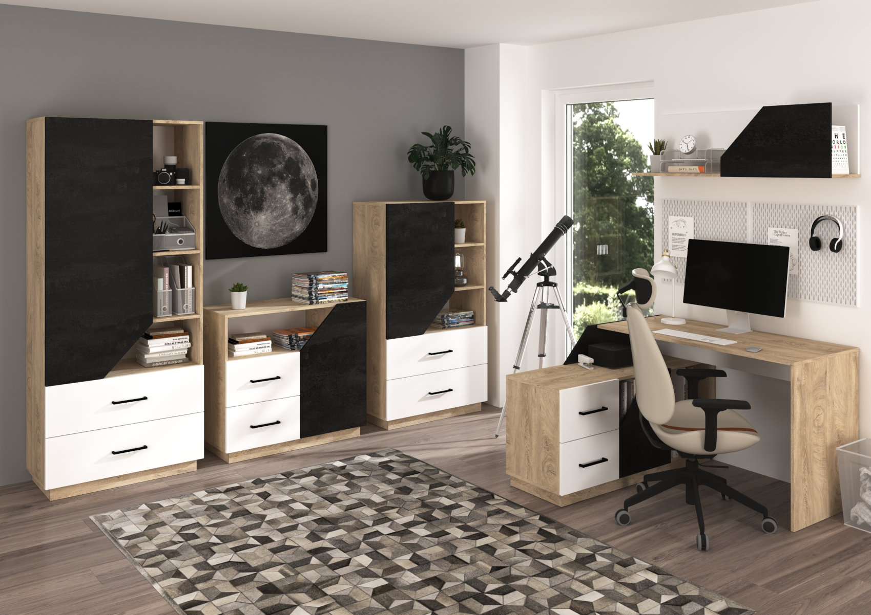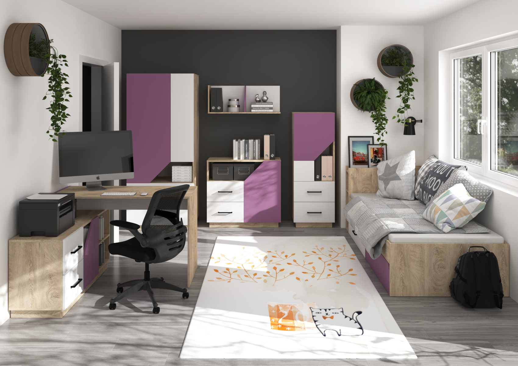 Postel Pax vás zaujme svým moderním designem a barevným provedením. Je vyrobena z kvalitních lamino desek o síle 16 mm. Desky mají ABS hranění, které zvyšuje odolnost pro odštípnutí hran. Součástí zásuvek a dvířek v celém systému jsou jednoduché černé kovové úchyty, zároveň mají zabudovaný systém tichého dovírání. Nábytek je vybaven soklem, který zvyšuje stabilitu nábytku. Nabízíme vám několik barevných kombinací.