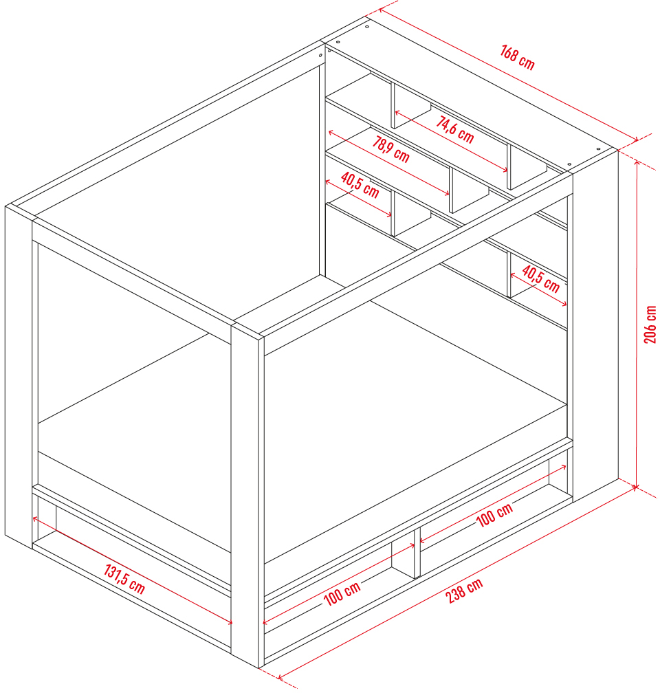 Zadní čelo postele je navrženo ve formě regálu s policemi k vystavení vašich oblíbených knih nebo rámečků s fotografiemi. V rámu postele jsou další otevřené police, do kterých si rovněž můžete uložit své oblíbené knihy nebo dekorace. Jednotlivé niky lze vyplnit také úložnými schránkami, které naleznete pod názvem úložná schránka 4You velká, úložná schránka 4You malá a úložná schránka k posteli 4You.