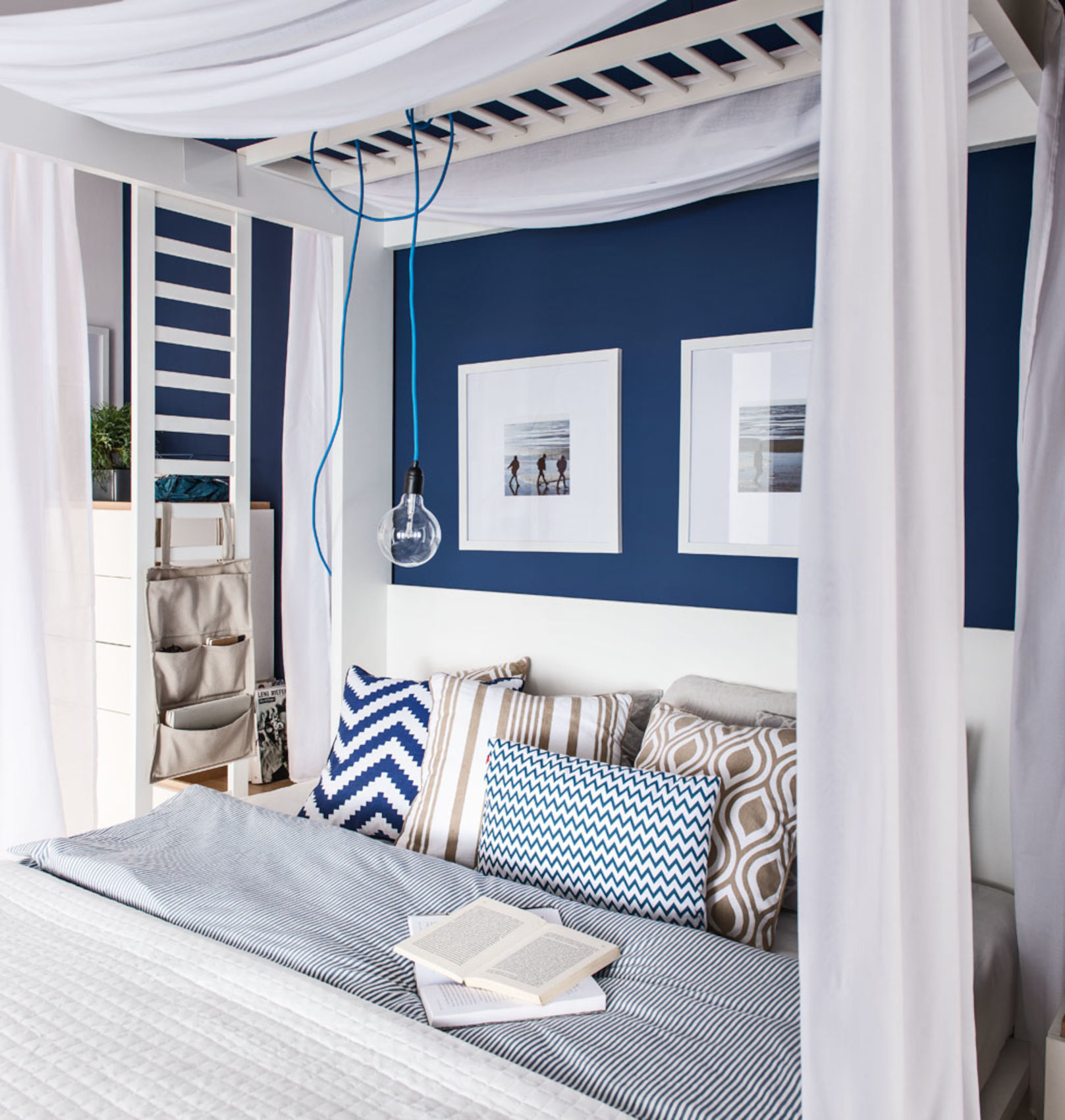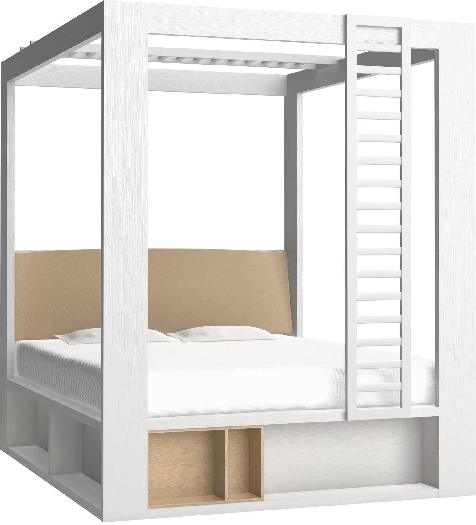 Na baldachýn, připevněný k posteli, můžete zavěsit látku a vytvořit si tak útulný a intimní prostor ke spánku. V naší nabídce naleznete také boční žebřík 4You. Na ten lze zavěsit různé látkové organizéry nebo květiny.