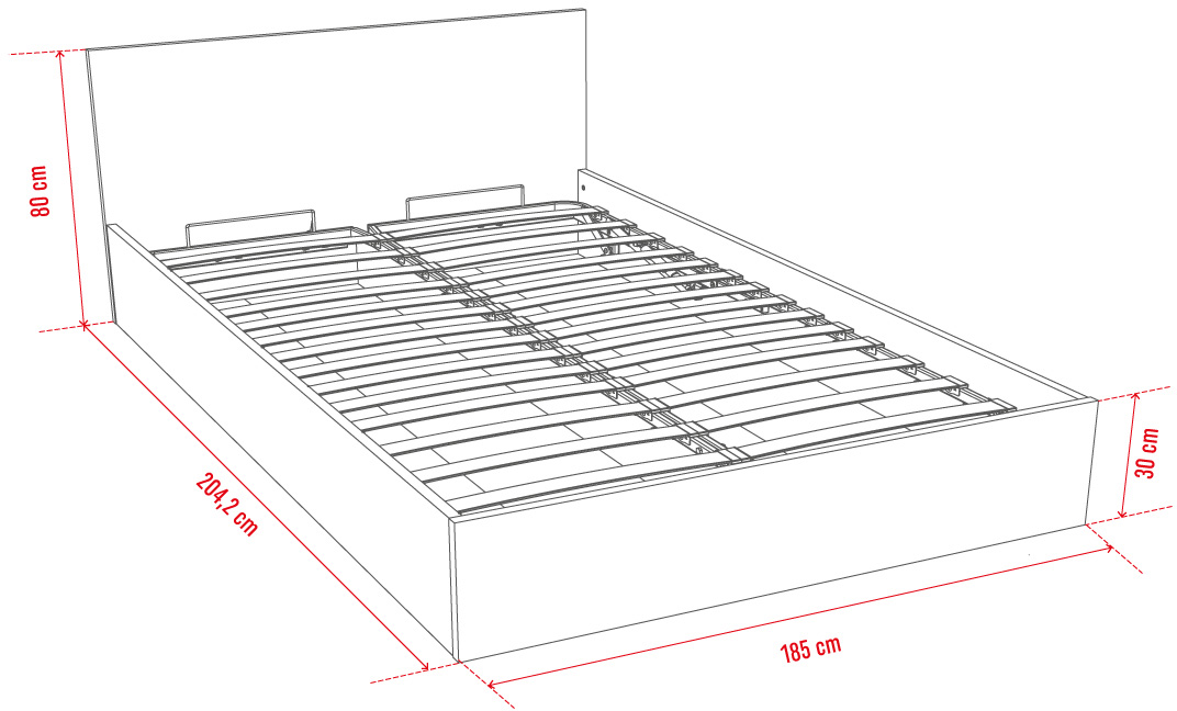 Součástí lůžka není rošt ani matrace. Součástí postele není rošt ani matrace. Rošt i matraci o rozměrech 120x200 cm, 140x200 cm, 160x200 cm nebo 180x200 cm (záleží, jaký rozměr postele si zvolíte), je potřeba si dokoupit v kategorii Matrace a rošty.