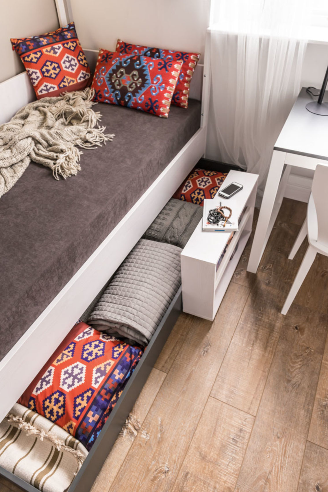 Součástí lůžka není rošt ani matrace. Rošt si lze vybrat jako variantu za příplatek. K posteli je potřeba si dokoupit matraci o rozměru 90x200 cm, kterou naleznete v kategorii Matrace a rošty. Volný prostor pod postelí můžete doplnit zásuvkou Nest k uložení lůžkovin. V naší nabídce naleznete také skříňku k posteli Nest, do které si vystavíte své oblíbené knihy, dekorace nebo rámečky s fotografiemi.