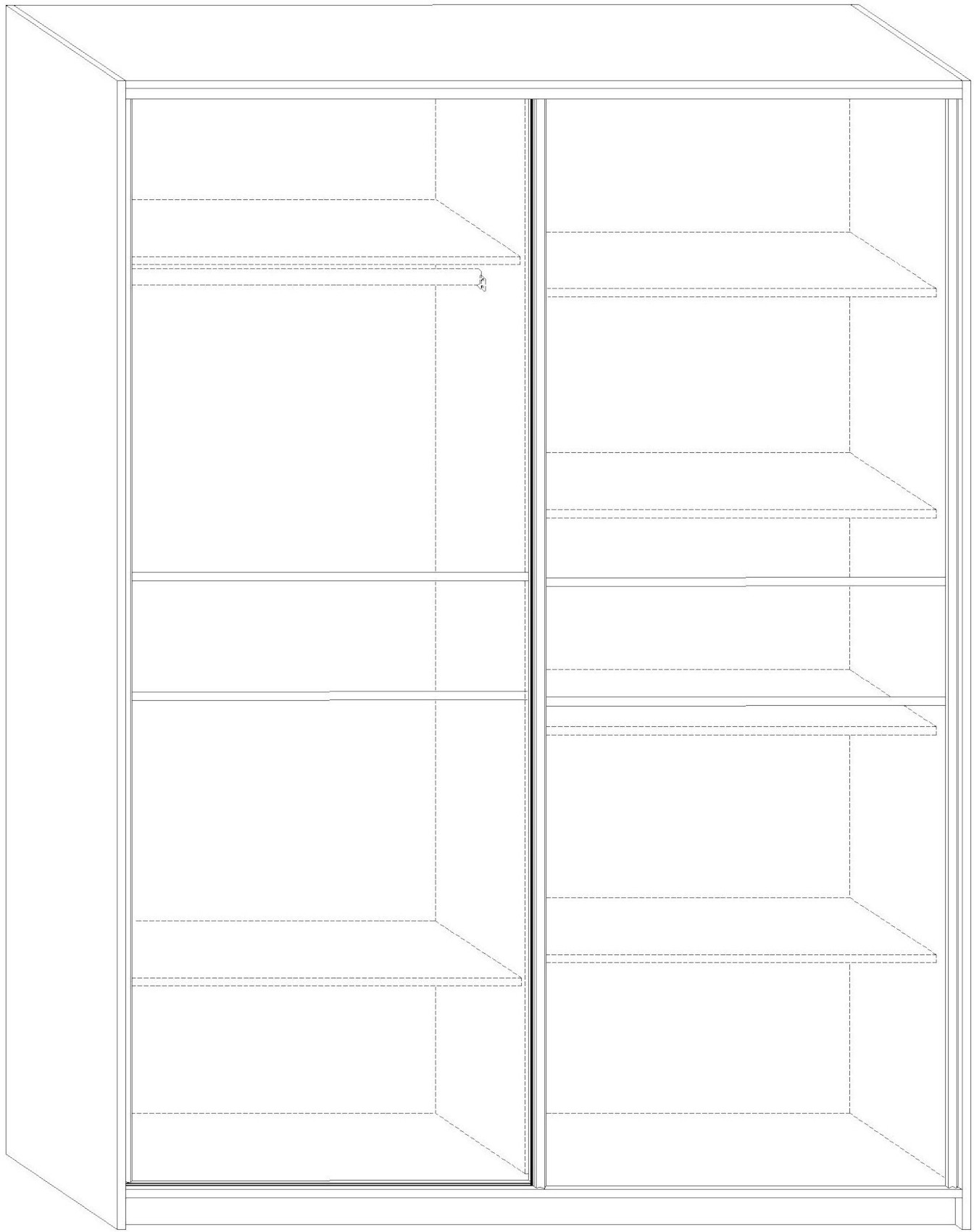 Také si můžete zvolit vnitřní vybavení levé části skříně podle svých preferencí. Nákresy možných vnitřních uspořádání naleznete také v galerii - v levé části můžete mít 1 nebo 2 šatní tyče, záleží na vás, kterému uspořádání dáte přednost. Skříň vám dodáme v demontu.