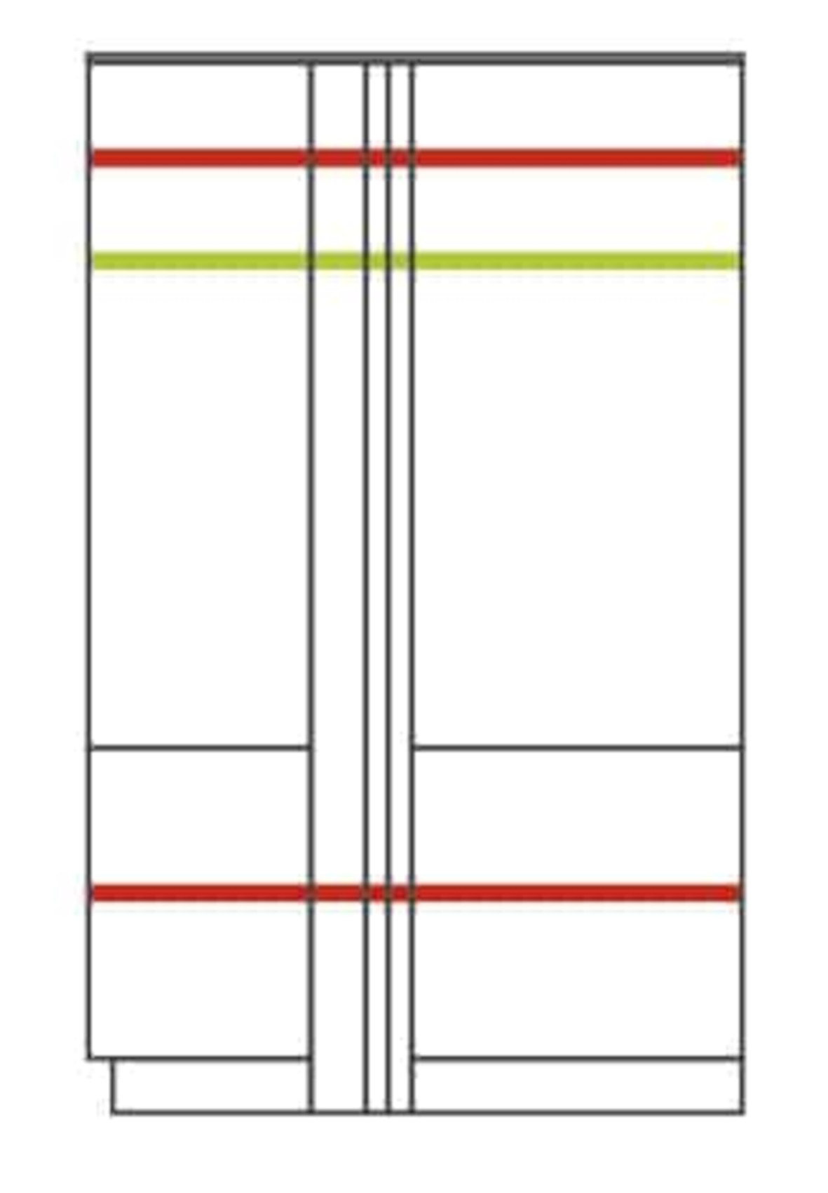 Ve vnitřním prostoru skříně jsou vloženy 4 dřevěné lakované police a 2 šatní tyče.