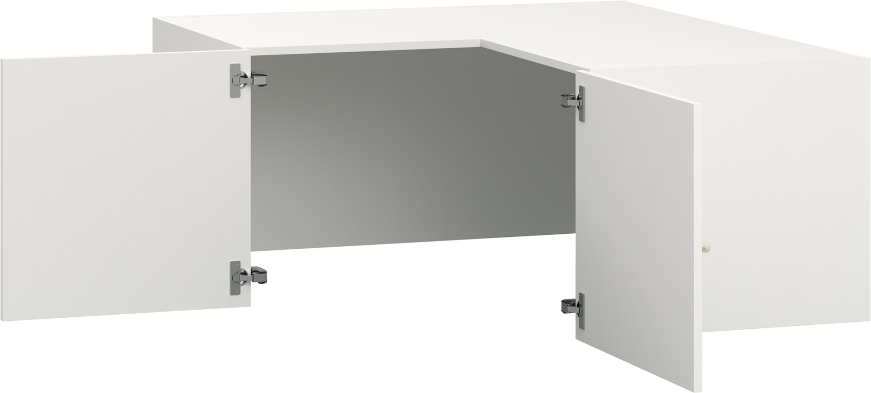 Nadstavba k rohové skříni Reli vás zaujme svým jednoduchým designem s moderními prvky v alabastrově bílém odstínu. Je vyrobena z kvalitního lamina o síle 16 mm a 22 mm, která vám zaručí odolnost vůči poškození. Úchyty jsou z přírodního bukového dřeva. Dvířka mají zabudovaný systém tichého dovíraní.