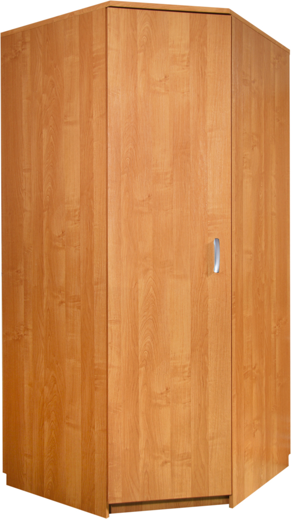 Prostorná rohová šatní skříň bez zrcadla je vhodná i do menších prostorů. V levé části jsou police, v pravé části šatní tyč. Ve spodní části je jedna velká police. Vyrobena z lamina o síle 16 mm, na výběr z několika barevných variant.