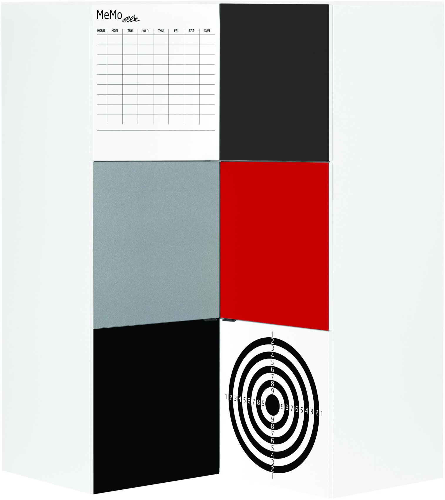 Na dvířka skříně lze připevnit barevné kovové díly nebo díly s potiskem a vytvořit si tak svůj jedinečný design nábytku.