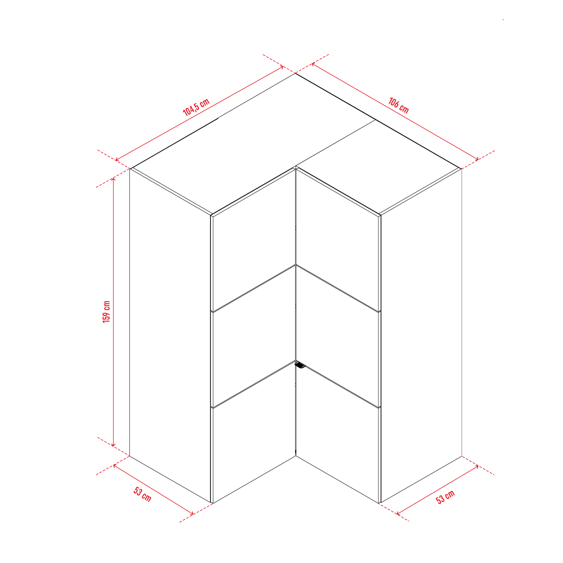 Rohová skříň Young Users vás zaujme svým prostým designem s moderními prvky. Je vyrobena z kvalitního lamina o síle 16 mm odolného vůči poškrábání a nečistotám. Dvířka mají zabudovaný systém tichého dovírání a gumové úchyty.