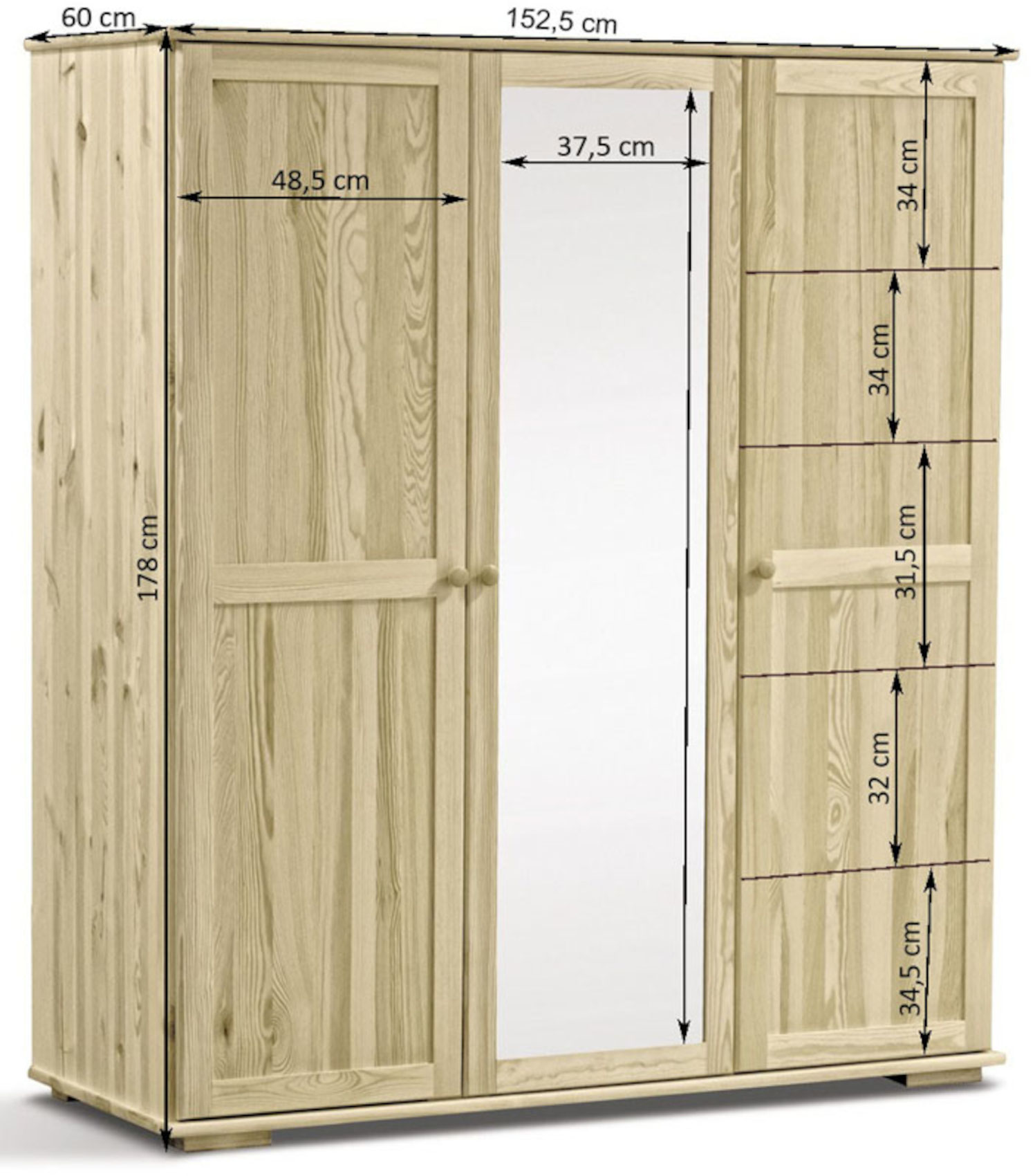 Borovicová šatní skříň Modern 150 se zrcadlem