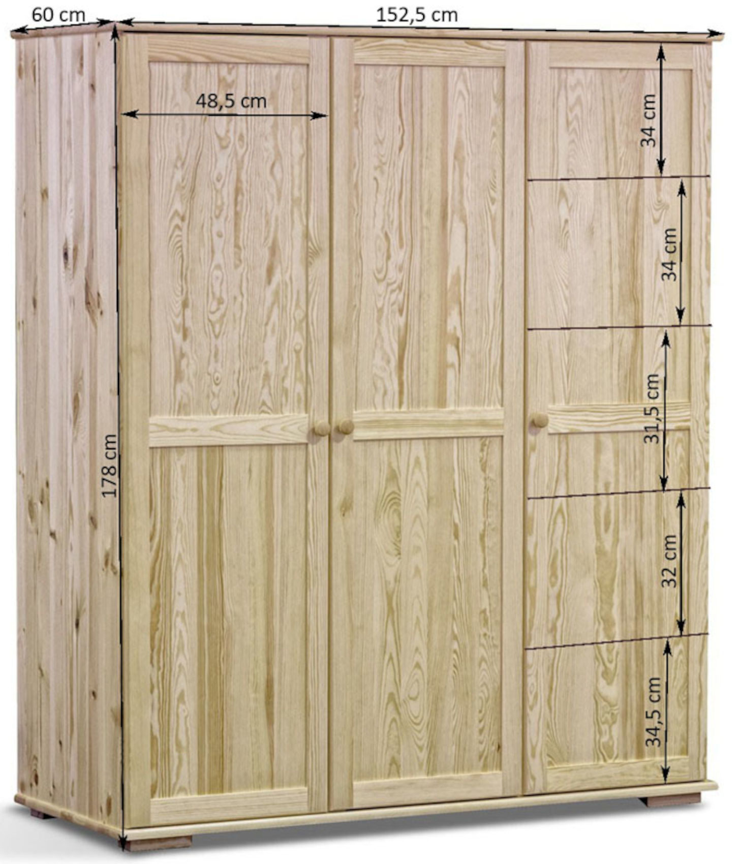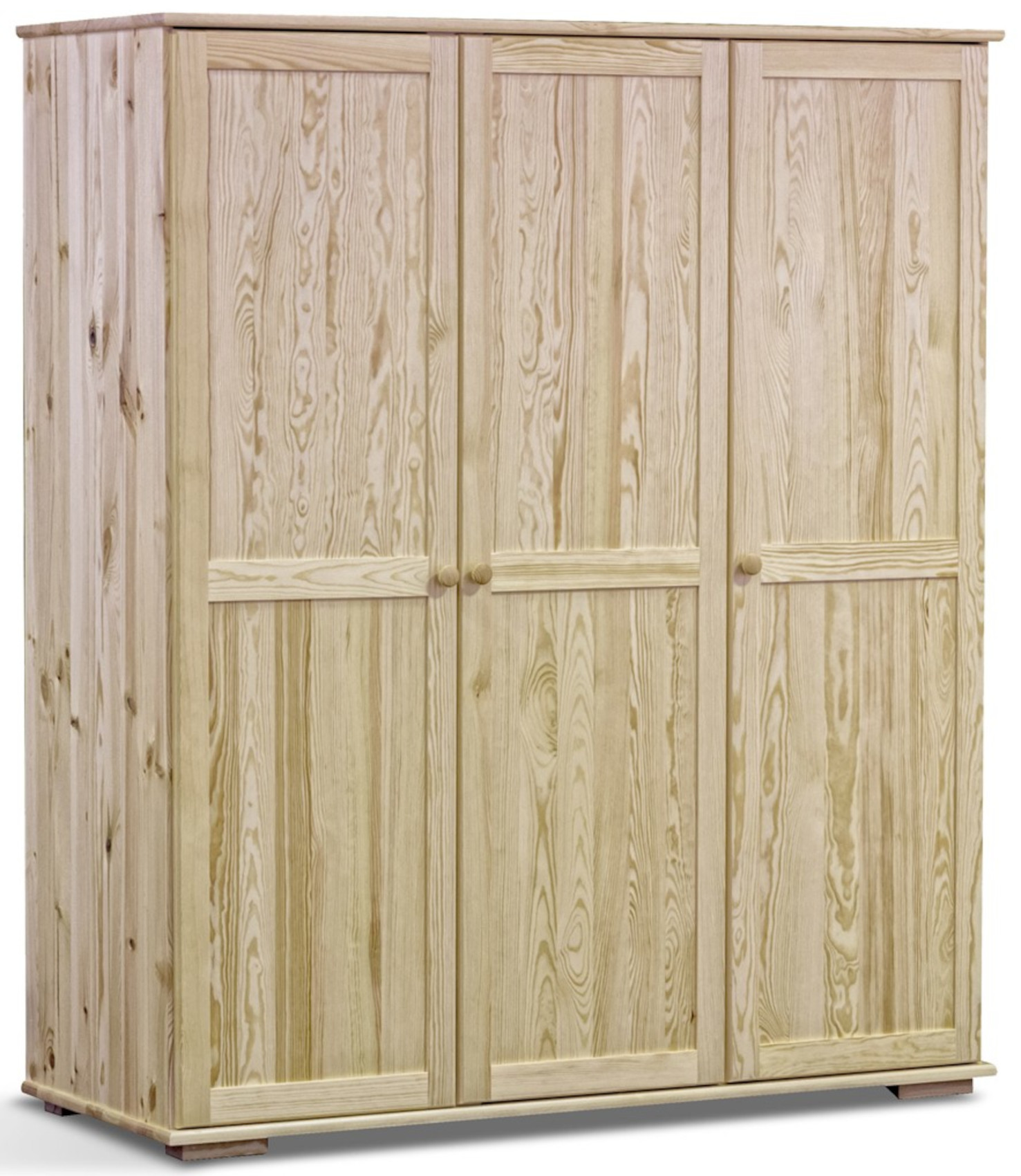 Šatní skříň Modern 150 vás zaujme svým jednoduchým přírodním designem s viditelnou strukturou dřevěných lét. Je vyrobena z masivního borovicového dřeva, které vám zaručí kvalitu, odolnost a stabilitu. Součástí jsou dřevěné úchyty ve tvaru knoflíku. Skříň stojí na nízkých nožkách, které dodají nádech elegance. Na výběr máte z několika odstínů moření dřeva.
