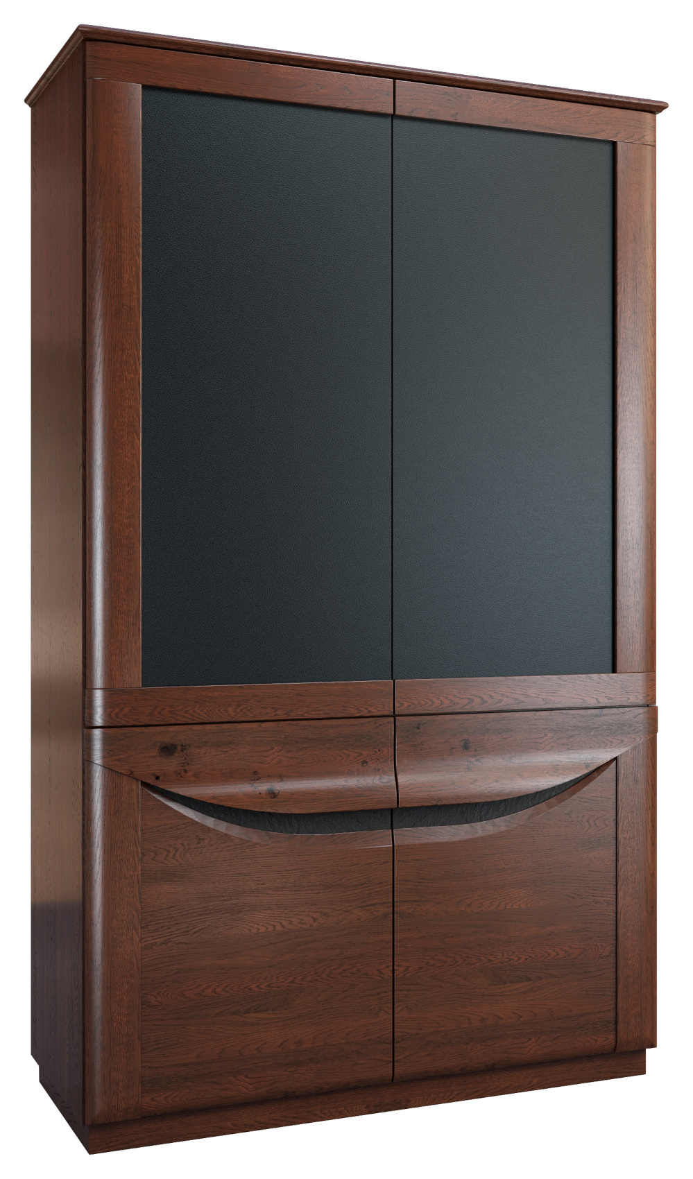 Šatní skříň Bari II vás zaujme svým elegantním designem. Je vyrobena z masivního dubového dřeva a přírodní dubové dýhy. Kvalitní lakování a moření dodává nábytku přírodní vzhled dřeva a zvýrazňuje strukturu lét. Jedinečným prvkem celé kolekce jsou vyřezávané dekorační prvky na dvířkách v 5 odstínech - burgundský dub, beton, rez, černá (magma) a ocel.