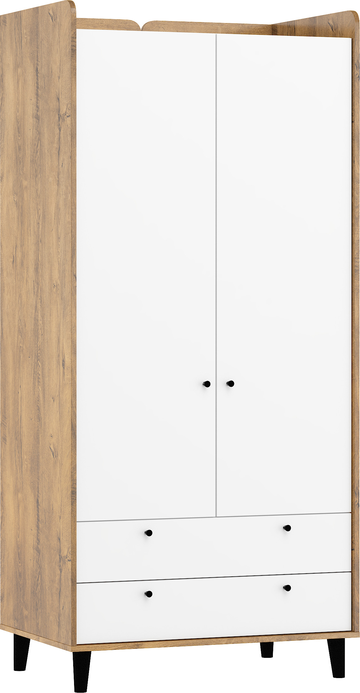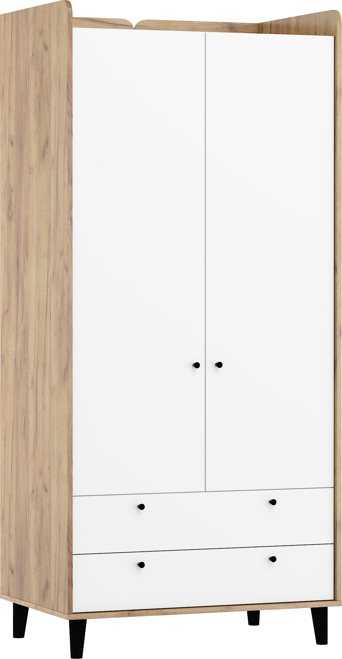 Vnitřní vybavení šatní skříně Dolce 20 tvoří police v horní části a pod ní šatní tyč. Navíc má skříň také 2 prostorné zásuvky.