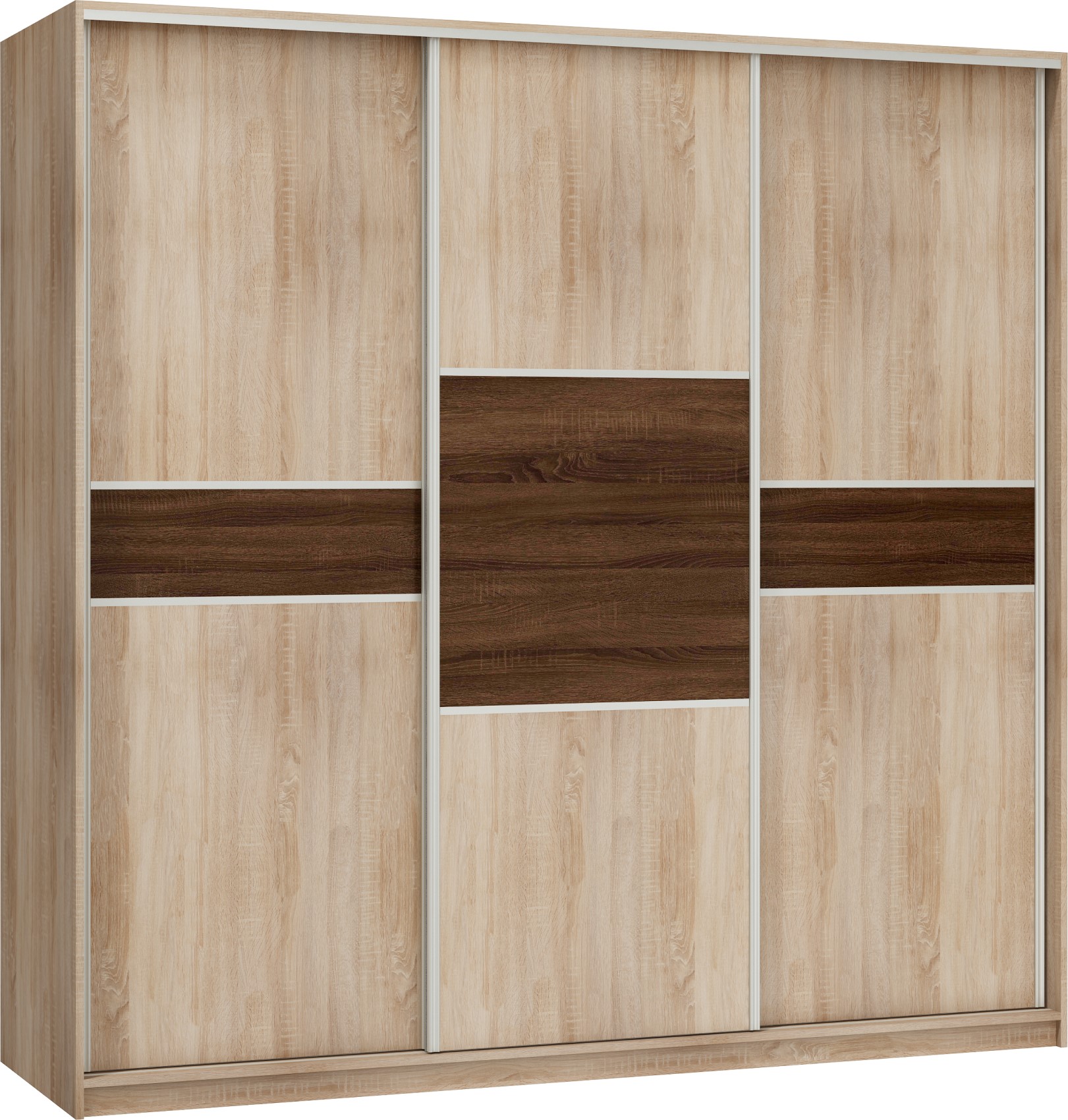 Moderní šatní skříň Puerto s posuvnými dveřmi, které vám ušetří hodně prostoru ve vaší domácnosti. Lamino materiál, použitý na výrobu skříně, je 16 mm silný. Skříň Puerto si můžete vybrat z více moderních dekorů.