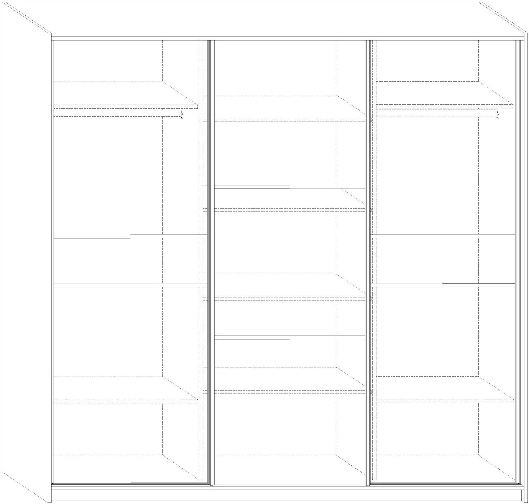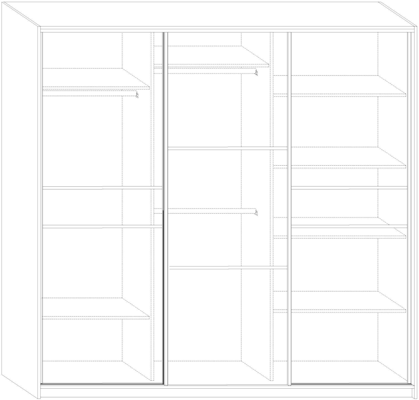 Také si můžete zvolit vnitřní vybavení levé části skříně podle svých preferencí. Nákresy možných vnitřních uspořádání naleznete také v galerii – v levé části můžete mít 1 nebo 2 šatní tyče, záleží na vás, kterému uspořádání dáte přednost. Skříň vám dodáme v demontu.