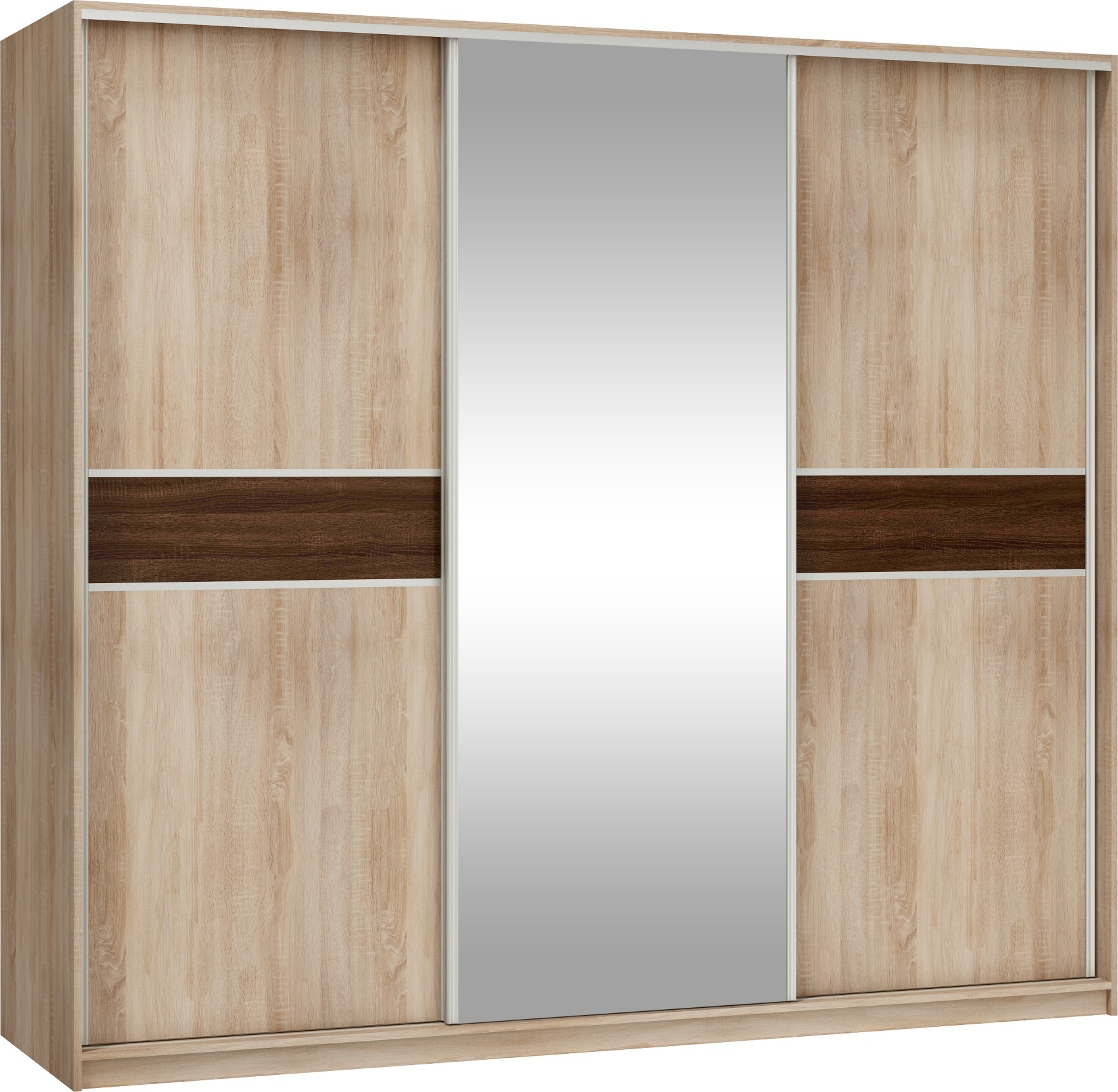 Moderní šatní skříň Puerto s posuvnými dveřmi, které vám ušetří hodně prostoru ve vaší domácnosti. Lamino materiál, použitý na výrobu skříně, je 16 mm silný. Skříň Puerto si můžete vybrat z více moderních dekorů.