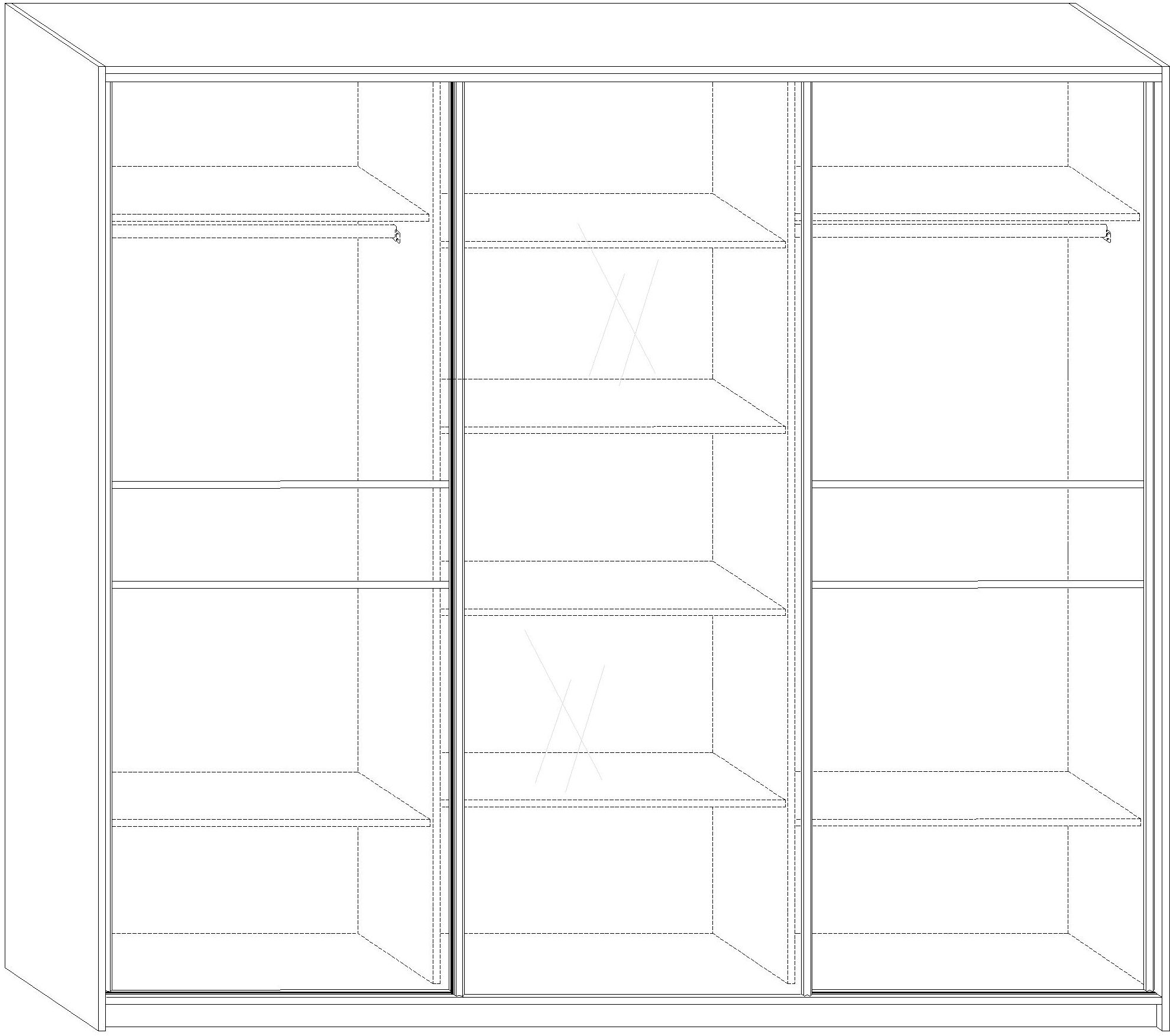 Také si můžete zvolit vnitřní vybavení levé části skříně podle svých preferencí. Nákresy možných vnitřních uspořádání naleznete také v galerii – záleží na vás, kterému uspořádání dáte přednost. Skříň vám dodáme v demontu.
