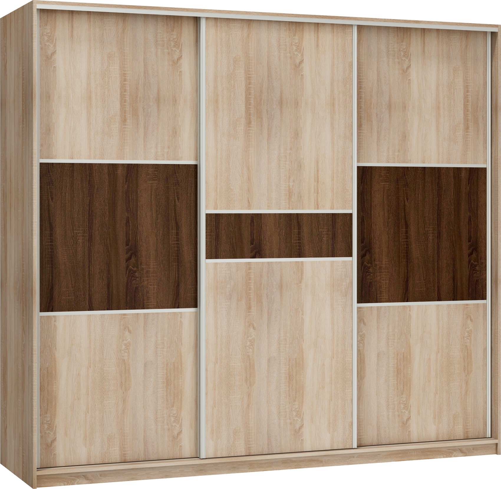 Moderní šatní skříň Rico 240 posuvnými dveřmi, které vám ušetří hodně prostoru ve vaší domácnosti. Lamino materiál, použitý na výrobu skříně, je 16 mm silný. Skříň Rico si můžete vybrat z více moderních dekorů.