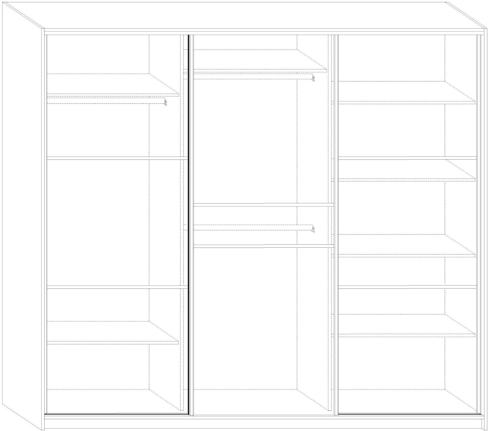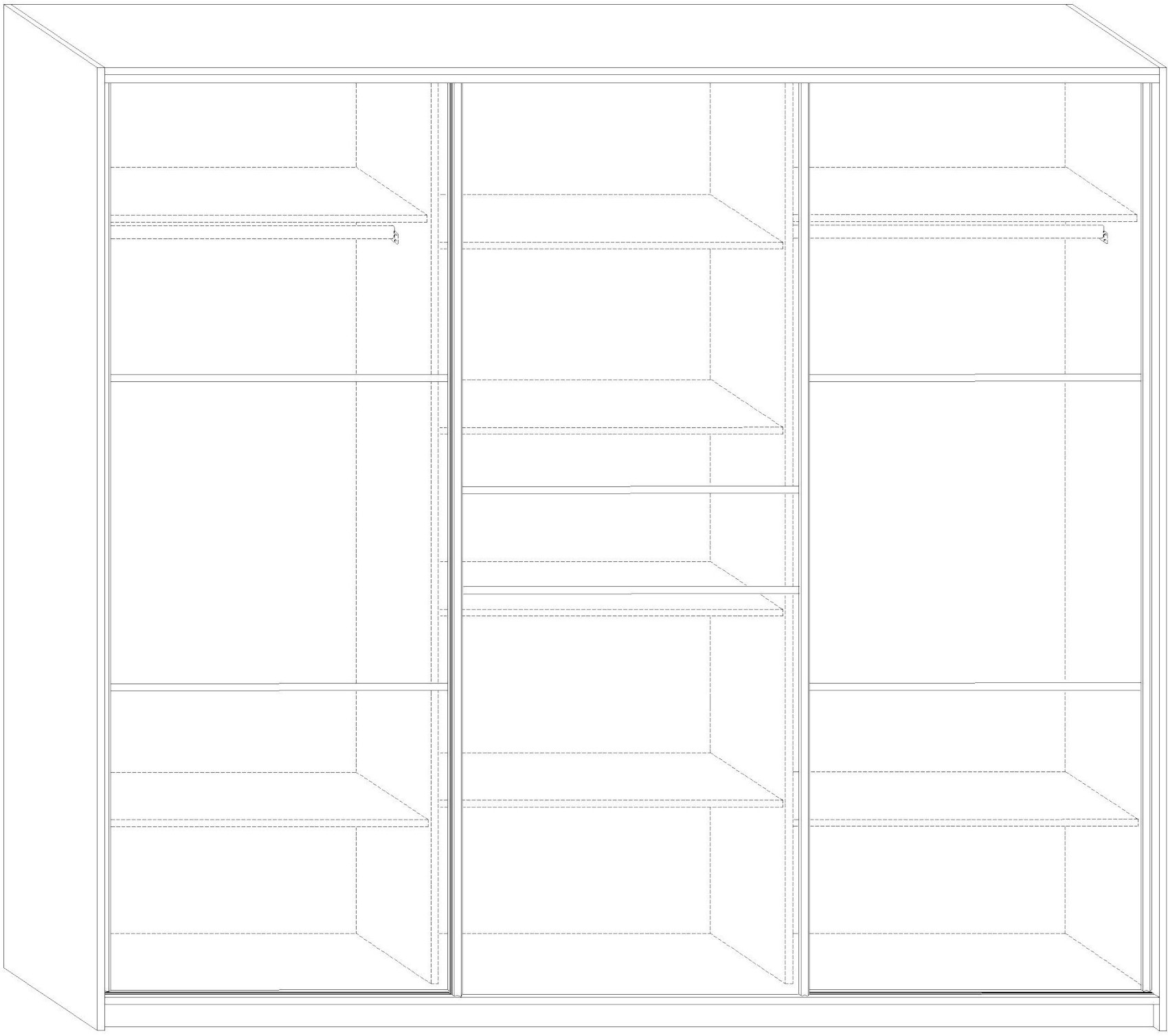 Také si můžete zvolit vnitřní vybavení levé části skříně podle svých preferencí. Nákresy možných vnitřních uspořádání naleznete také v galerii, záleží na vás, kterému uspořádání dáte přednost. Skříň vám dodáme v demontu.