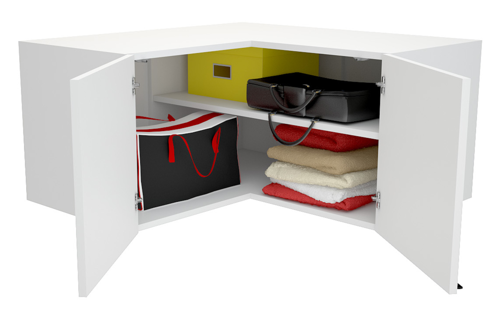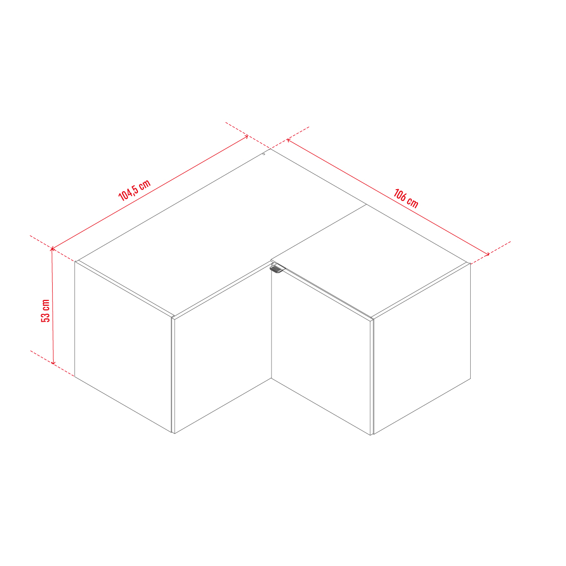Rohová nadstavbová skříňka Young Users vás zaujme svým prostým designem s moderními prvky. Je vyrobena z kvalitního lamina o síle 16 mm odolného vůči poškrábání a nečistotám. Dvířka mají zabudovaný systém tichého dovírání a gumové úchyty.