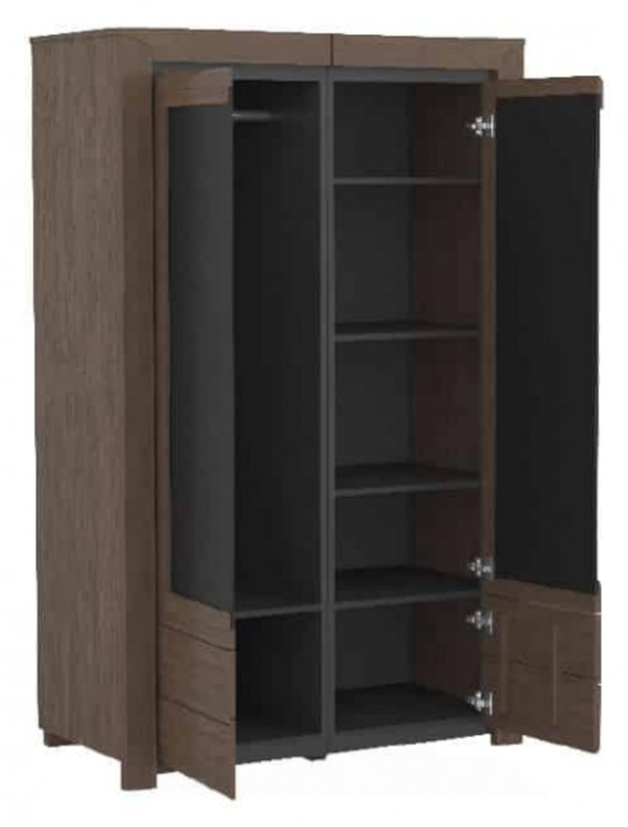 Luxusní šatní skříň Sempre 2D je vyrobena z masivního dubového dřeva a přírodní dubové dýhy. Přední část je očalouněná ekologickou kůží. Čtyřvrstvá technologie povrchového moření a lakování dává nábytku jedinečný design s výraznou strukturou lét masivního přírodního dřeva.