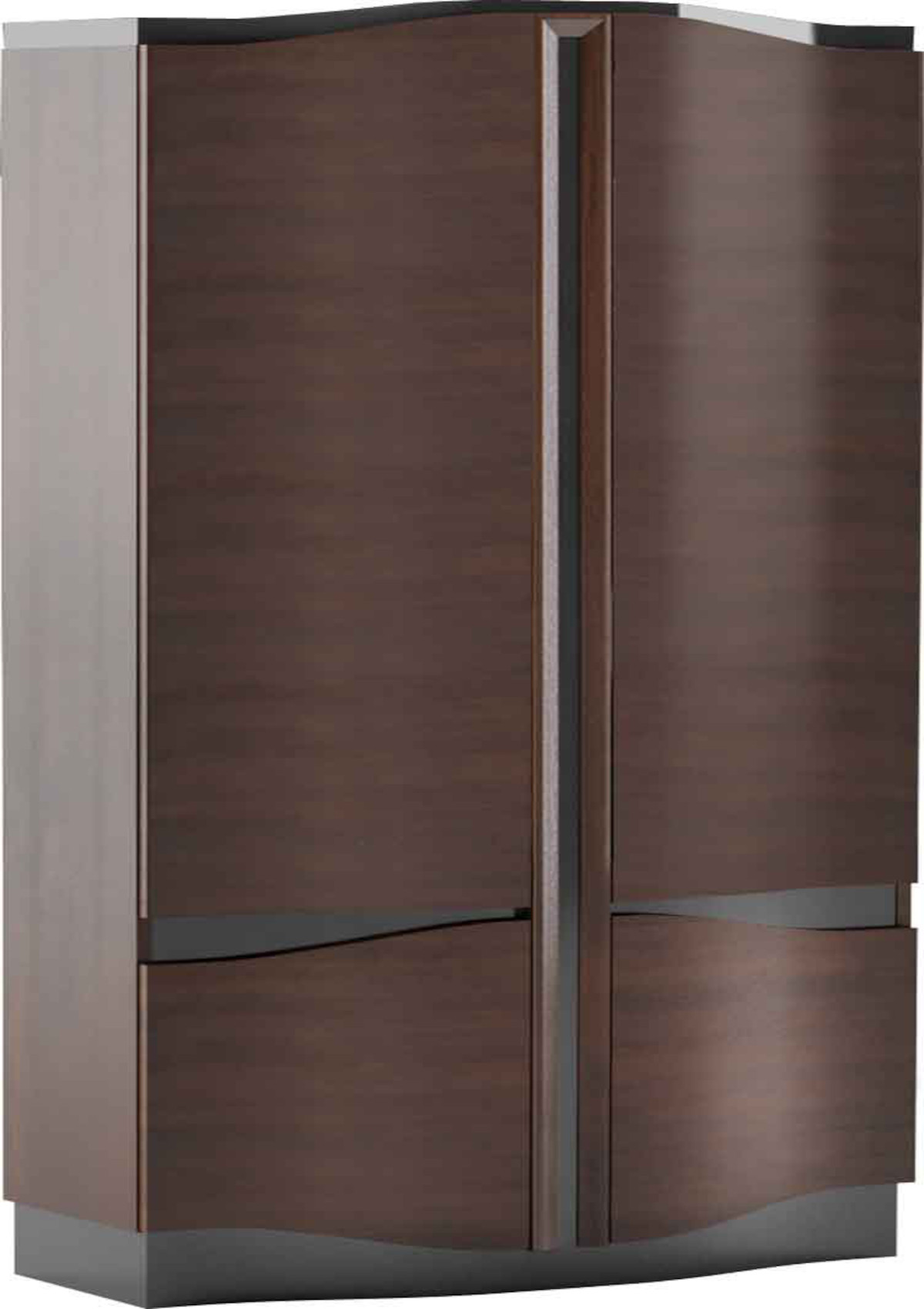 Šatní skříň Diuna II velká vás zaujme svým moderním a elegantním designem. Jedinečným prvkem jsou dvířka ve tvaru vlny. Skříň je vyrobena z masivu a masivní třešňové dýhy s černými lakovanými detaily. Kvalitní lakování a moření dodává nábytku přirozený vzhled a zvýrazňuje jeho strukturu lét. Systémový nábytek Diuna má jednouchý dotykový systém otevírání dvířek - Push to open.
