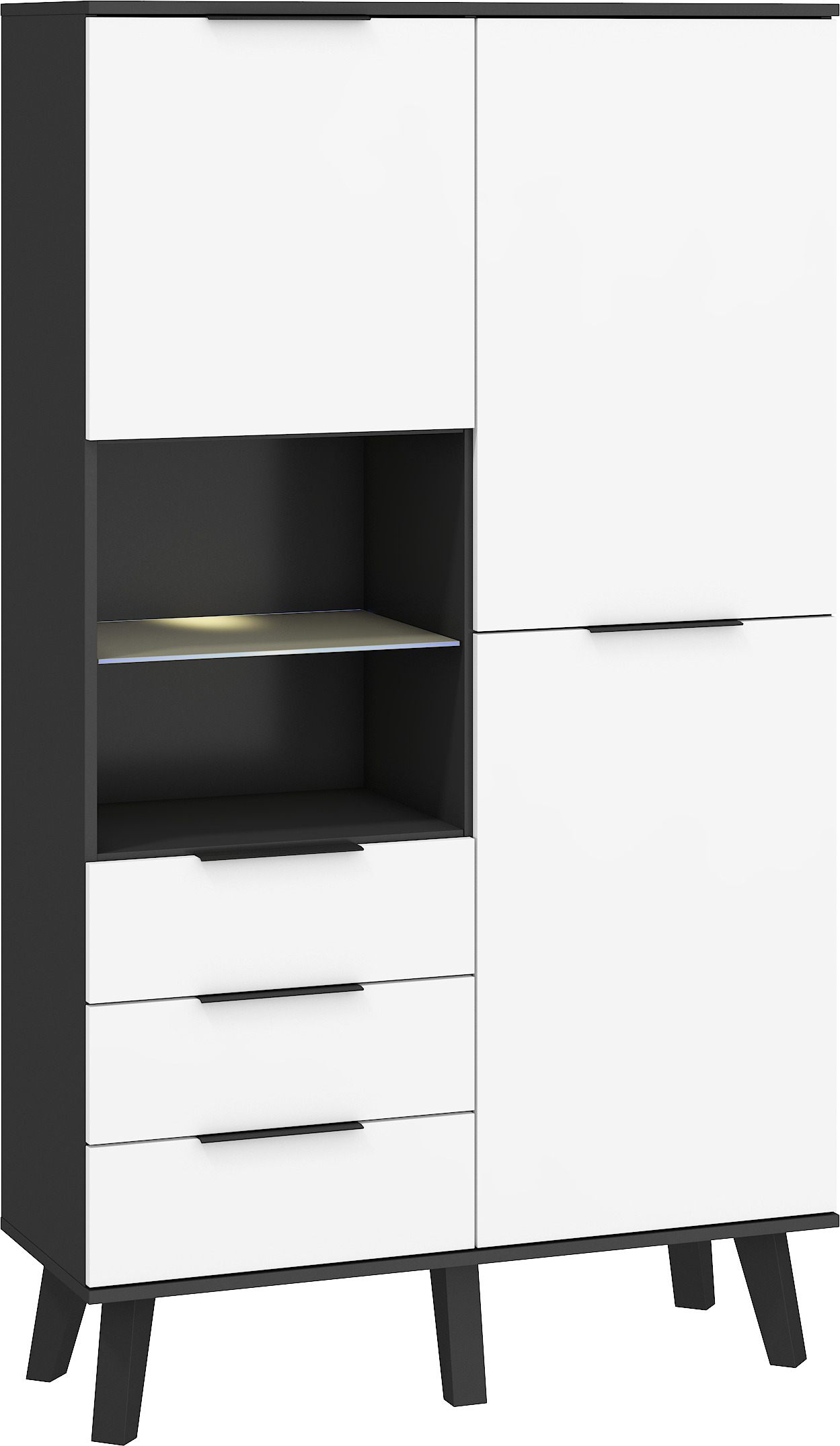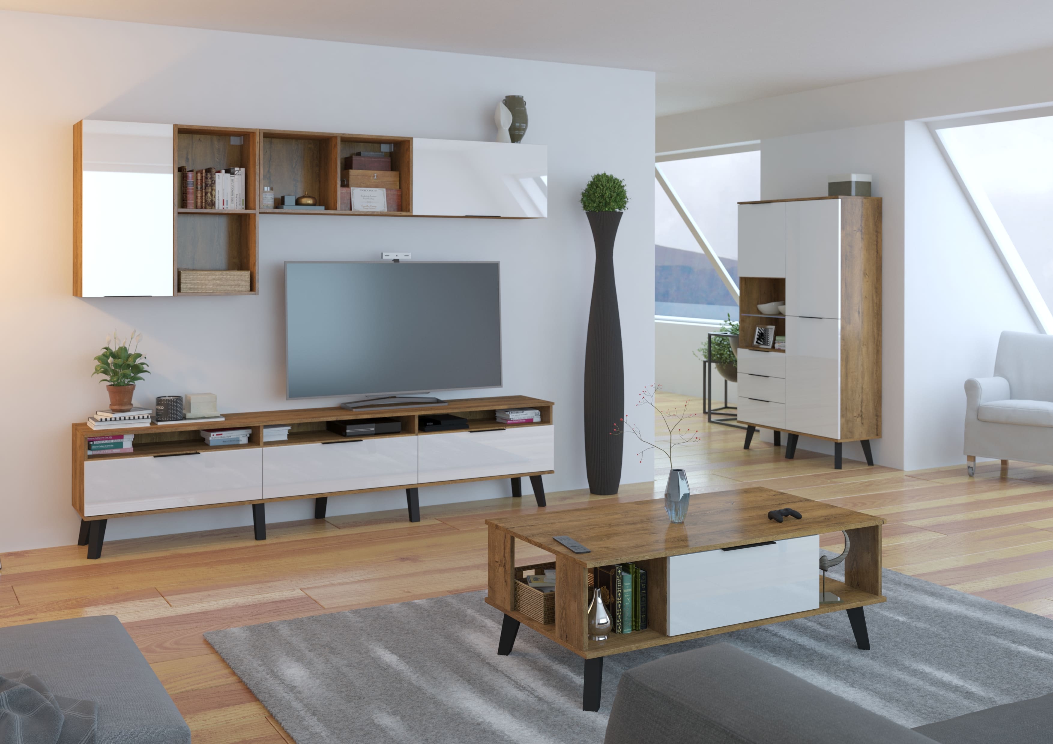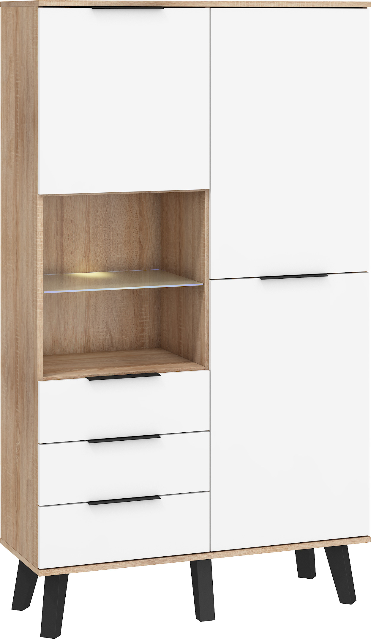 Výrazným prvkem jsou černé 18 cm vysoké dřevěné nožky, které dodají celé kolekci originální vzhled. A nejen to, vysoké nožky jsou také praktické při uklízení. Černou barvu mají i úchyty, jež doplňují barevné kombinace reflektující moderní trendy v bydlení. Vybavte si svůj obývák kolekcí SVEN!