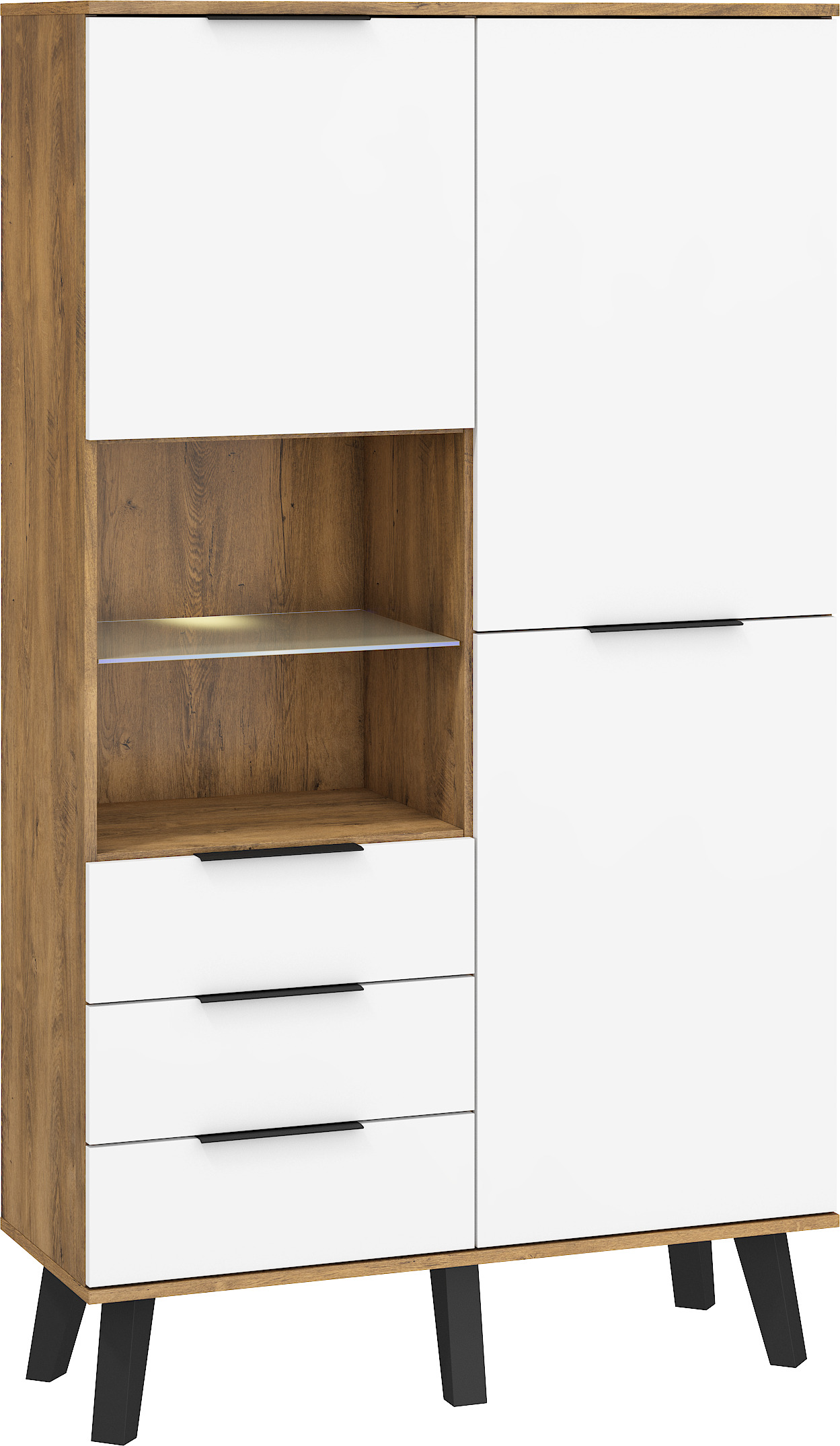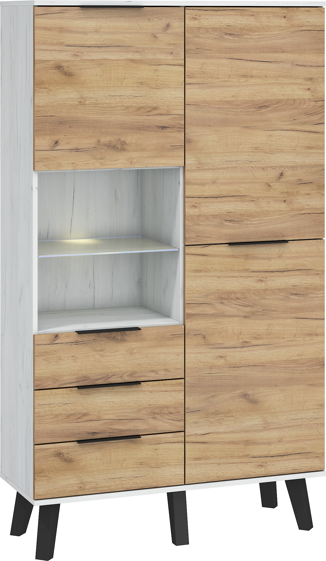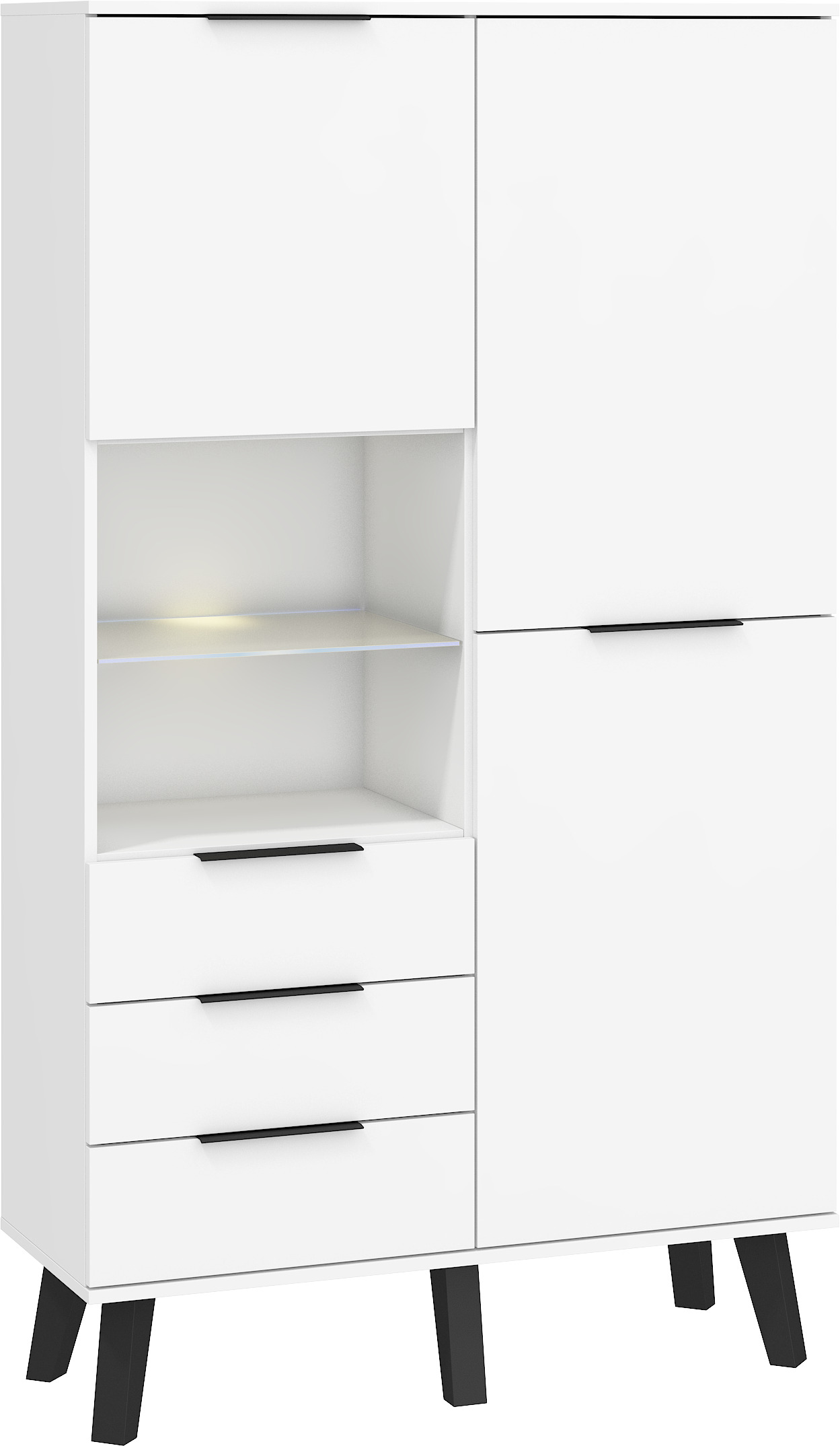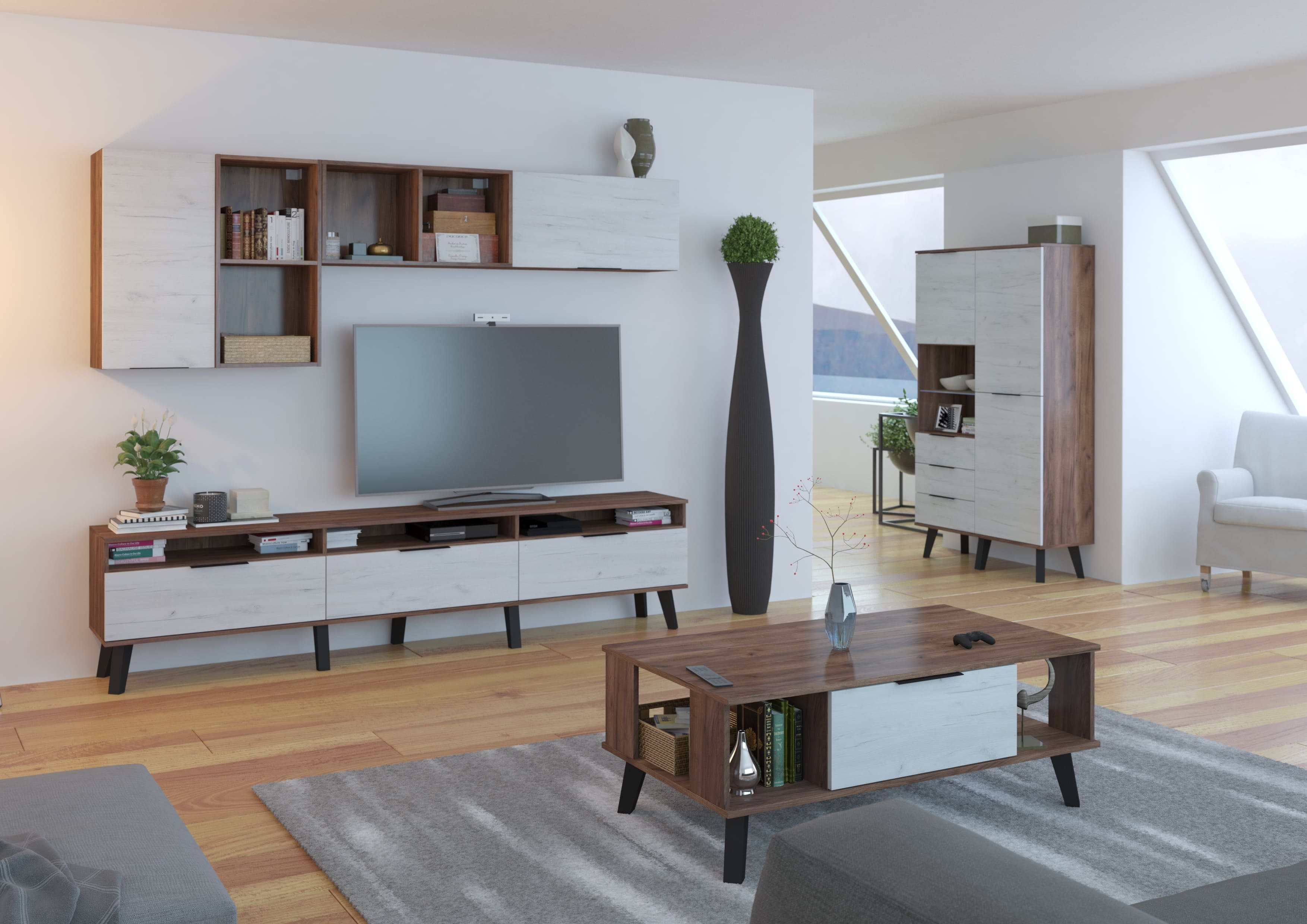 Výrazným prvkem jsou černé 18 cm vysoké dřevěné nožky, které dodají celé kolekci originální vzhled. A nejen to, vysoké nožky jsou také praktické při uklízení. Černou barvu mají i úchyty, jež doplňují barevné kombinace reflektující moderní trendy v bydlení. Vybavte si svůj obývák kolekcí SVEN!
