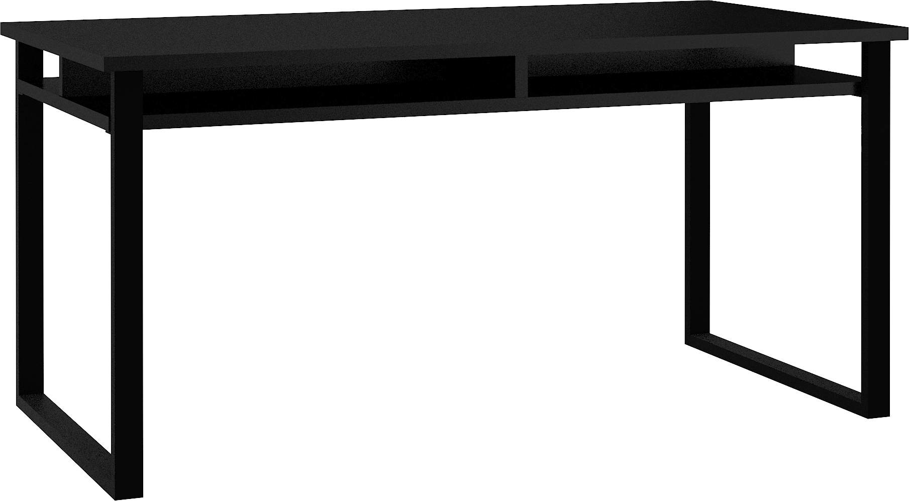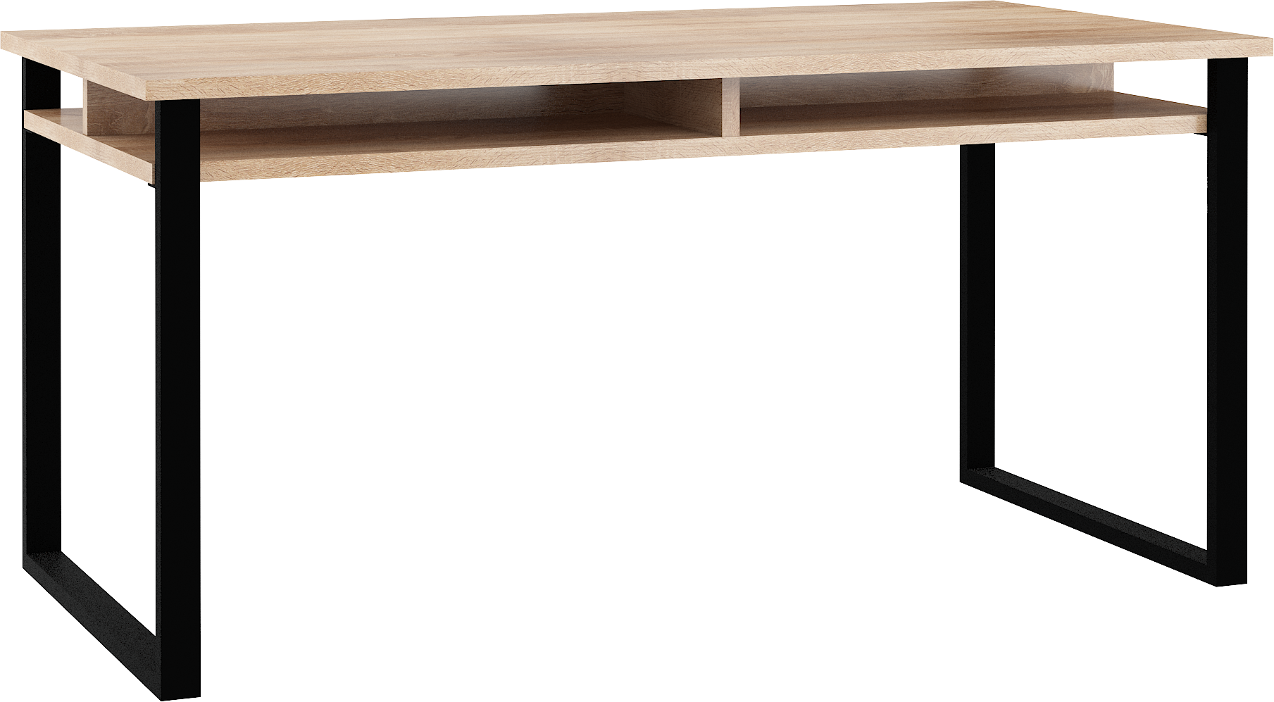 Stůl má odkládací prostory a kovové nožky vysoké 73 cm. Stůl není rozkládací.